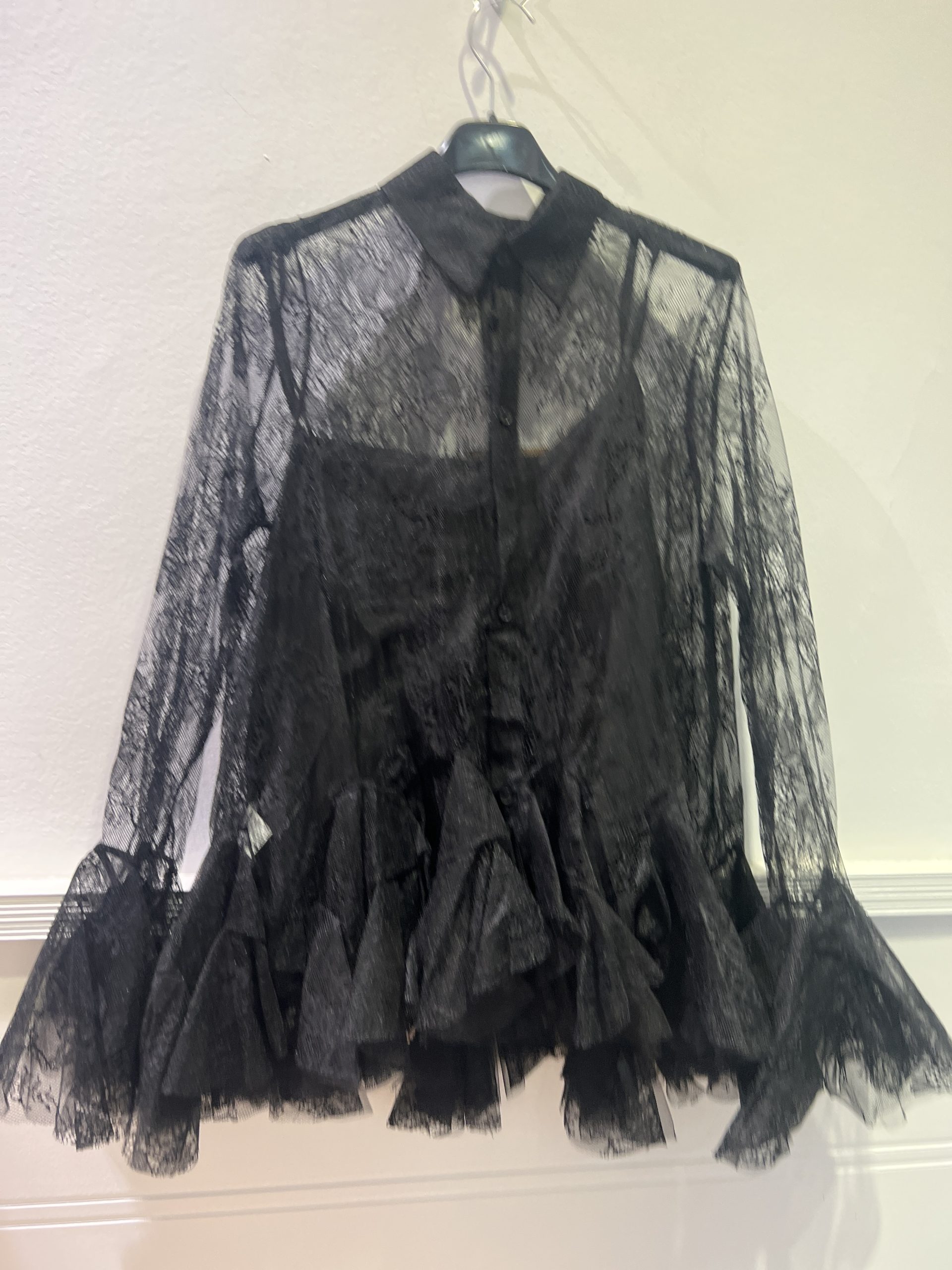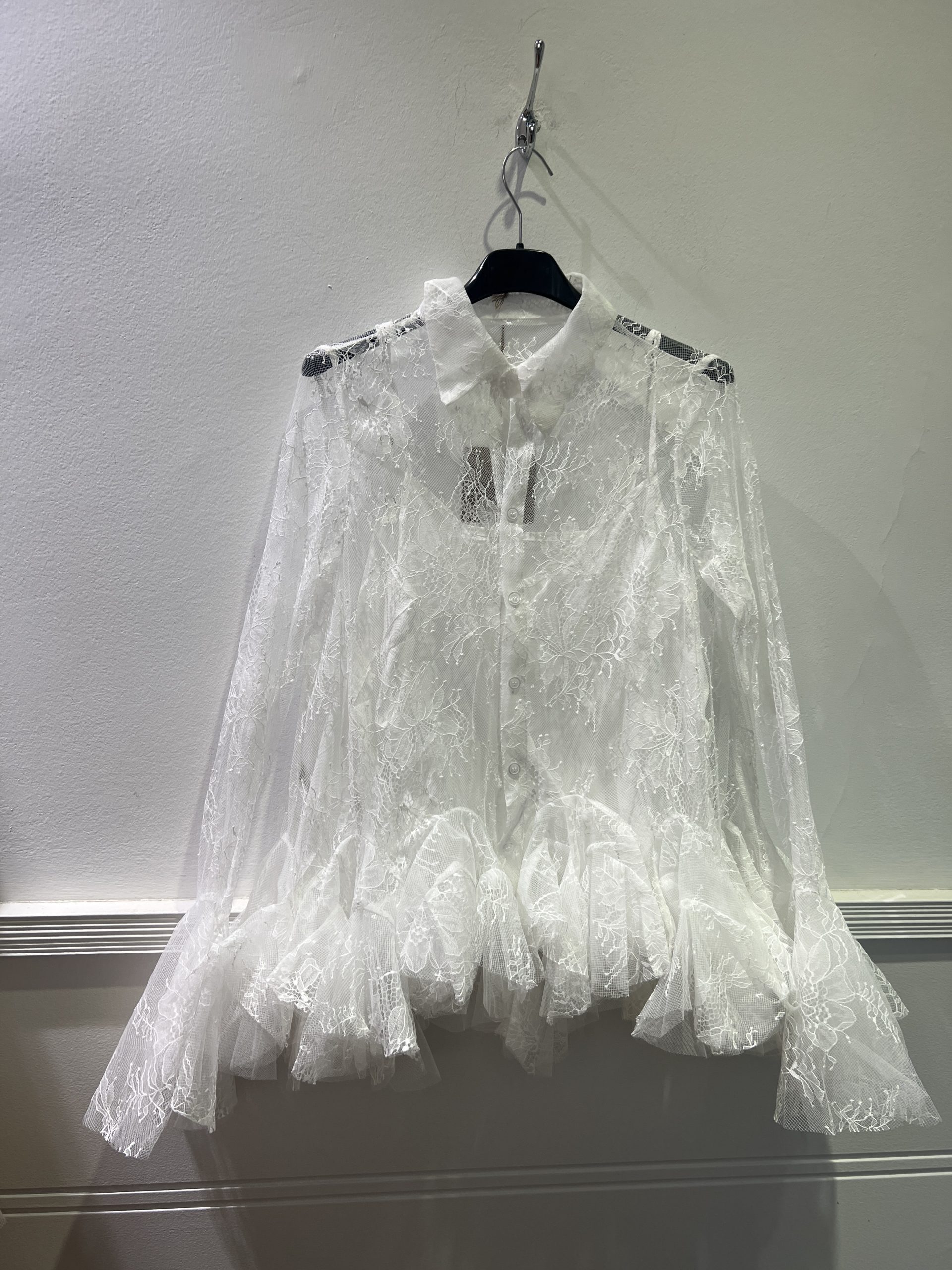 Blusa de tul para confeccionada en tejido ligero y semitransparente. Su diseño con volantes en mangas y bajo aporta  un estilo romántico, femenino y elegante. Incorpora forro interior tipo lencero, que proporciona comodidad y cobertura sin perder la delicadeza del tul.