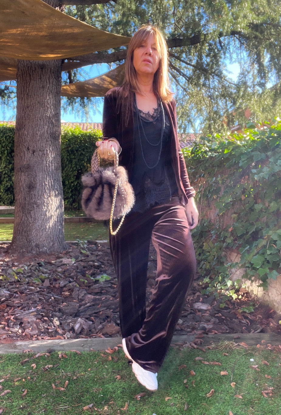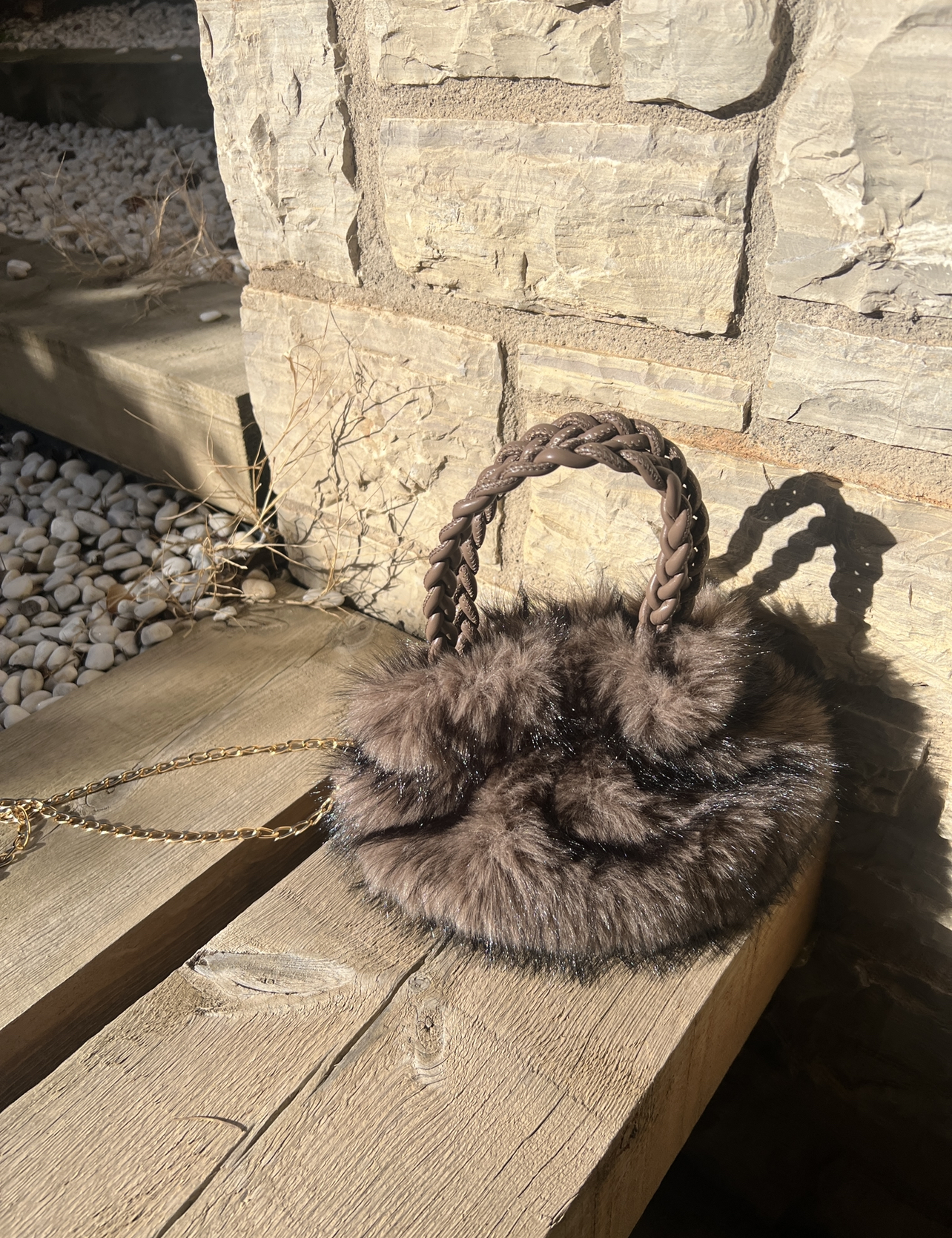 bolso de pelo sintetico con asa de ecopiel y correa metalica