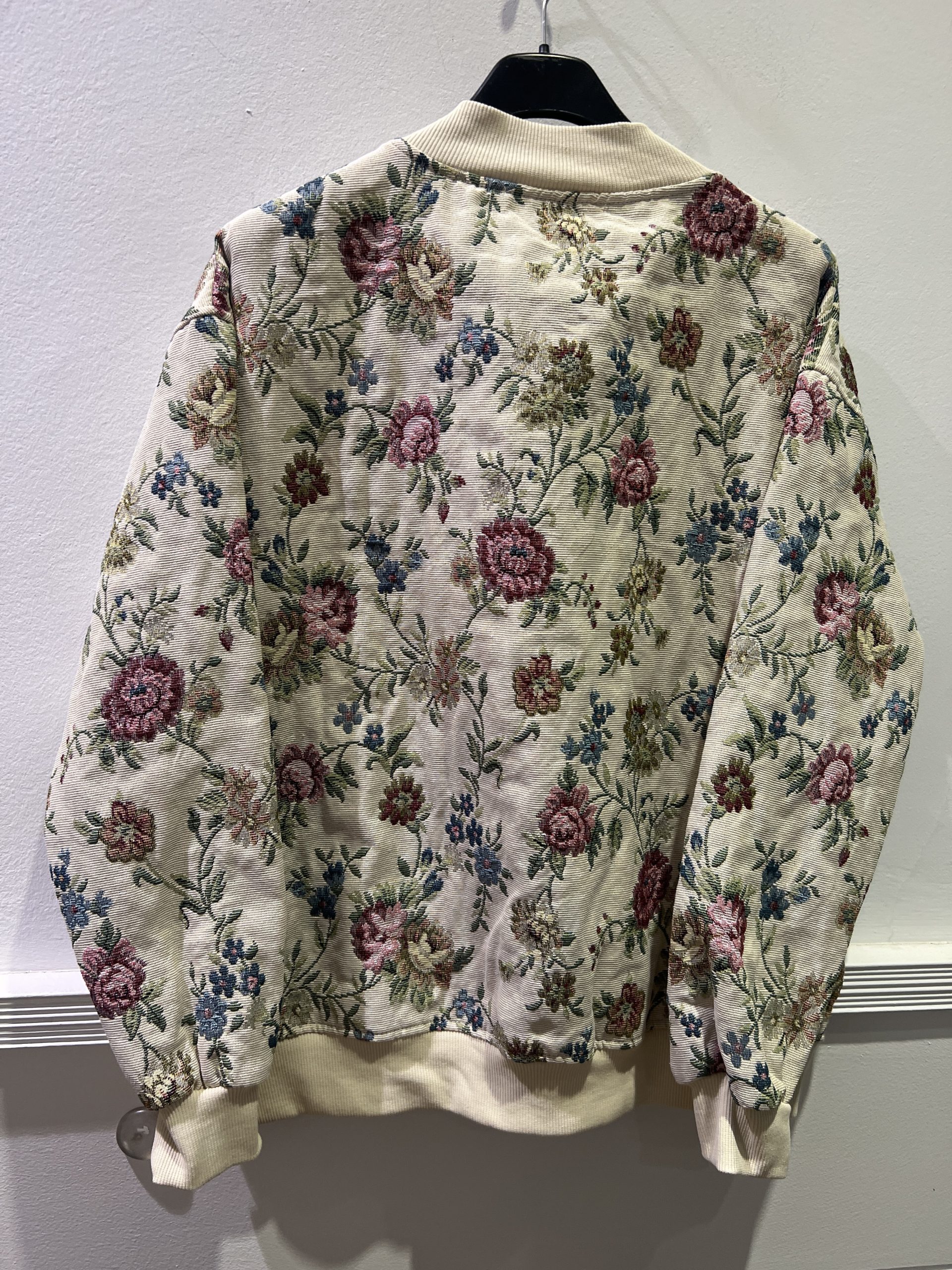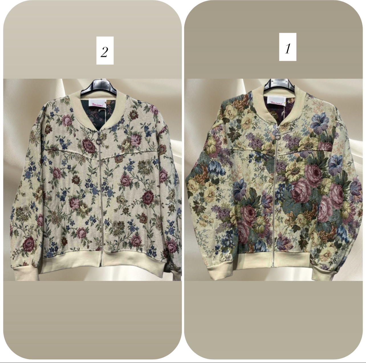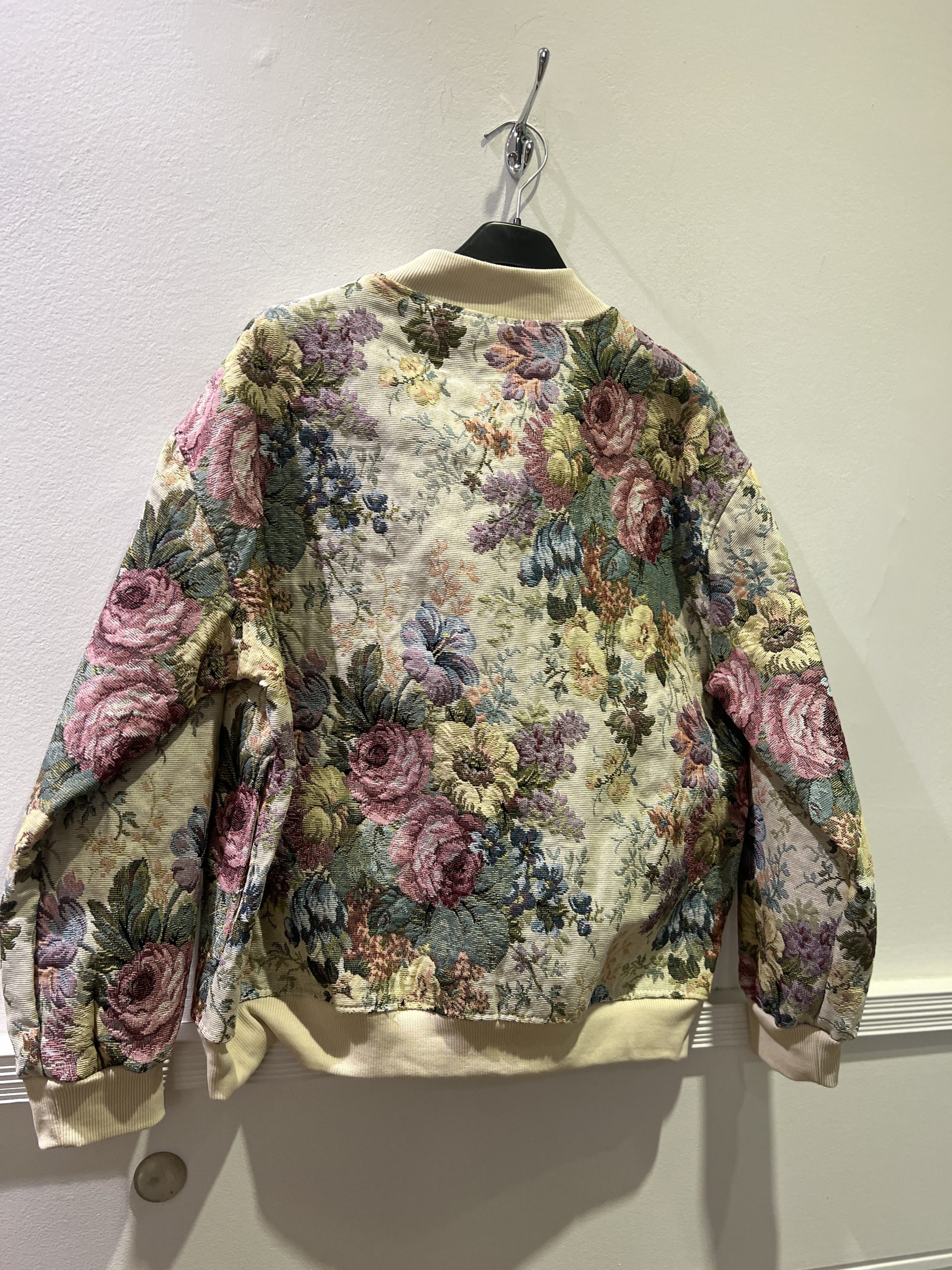 Bomber de silueta urbana con estampado floral de inspiración vintage. Una pieza statement que fusiona referencias clásicas con estética street actual.
