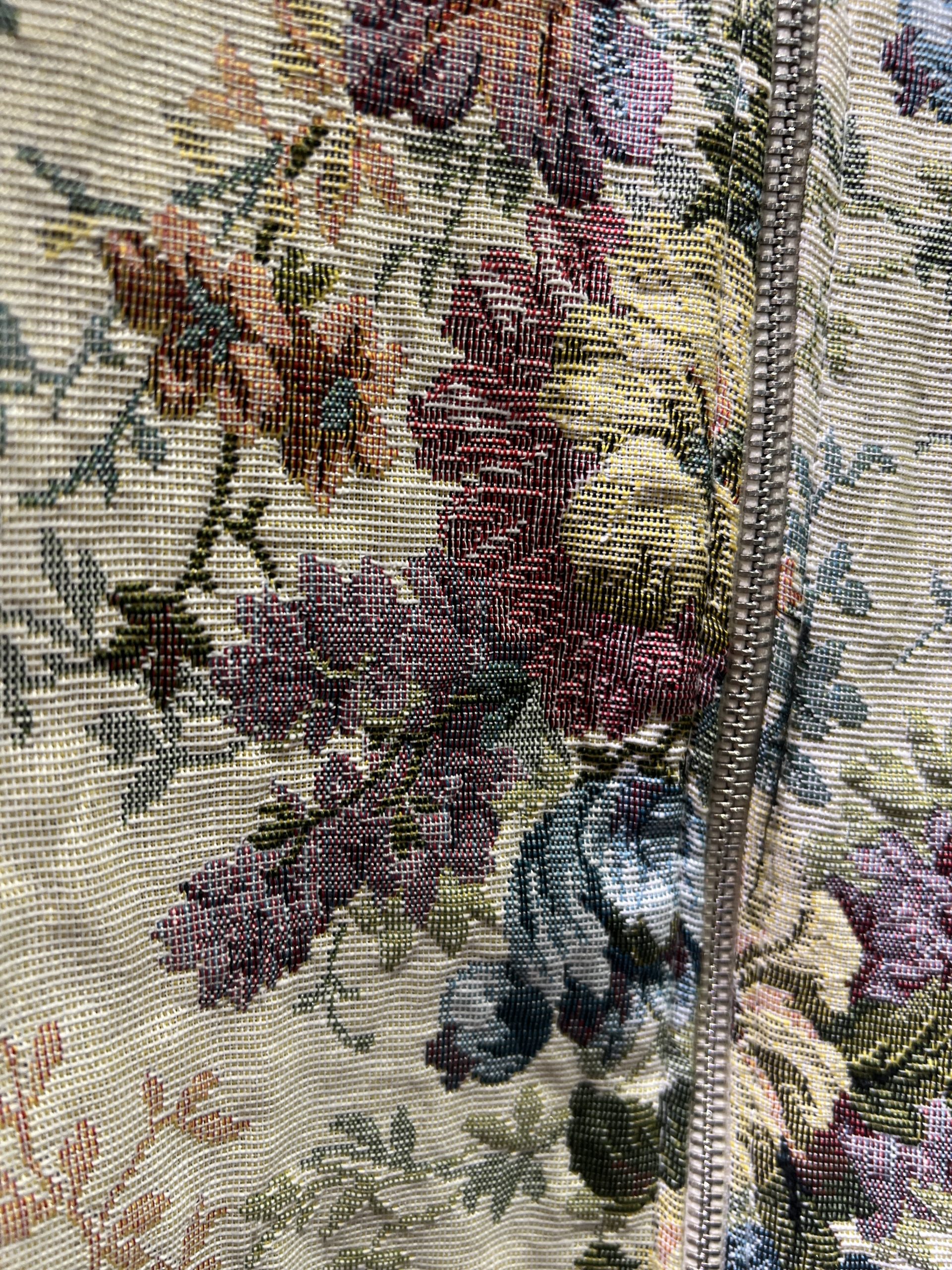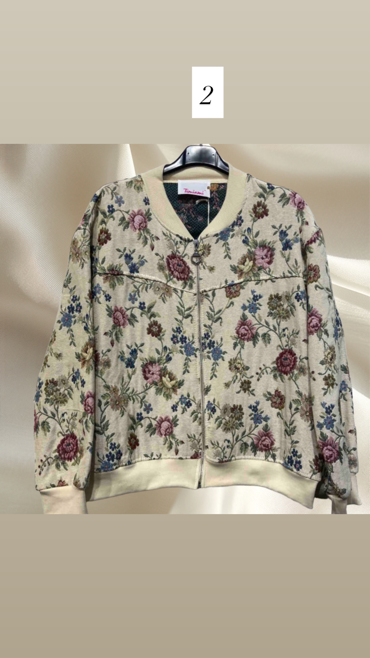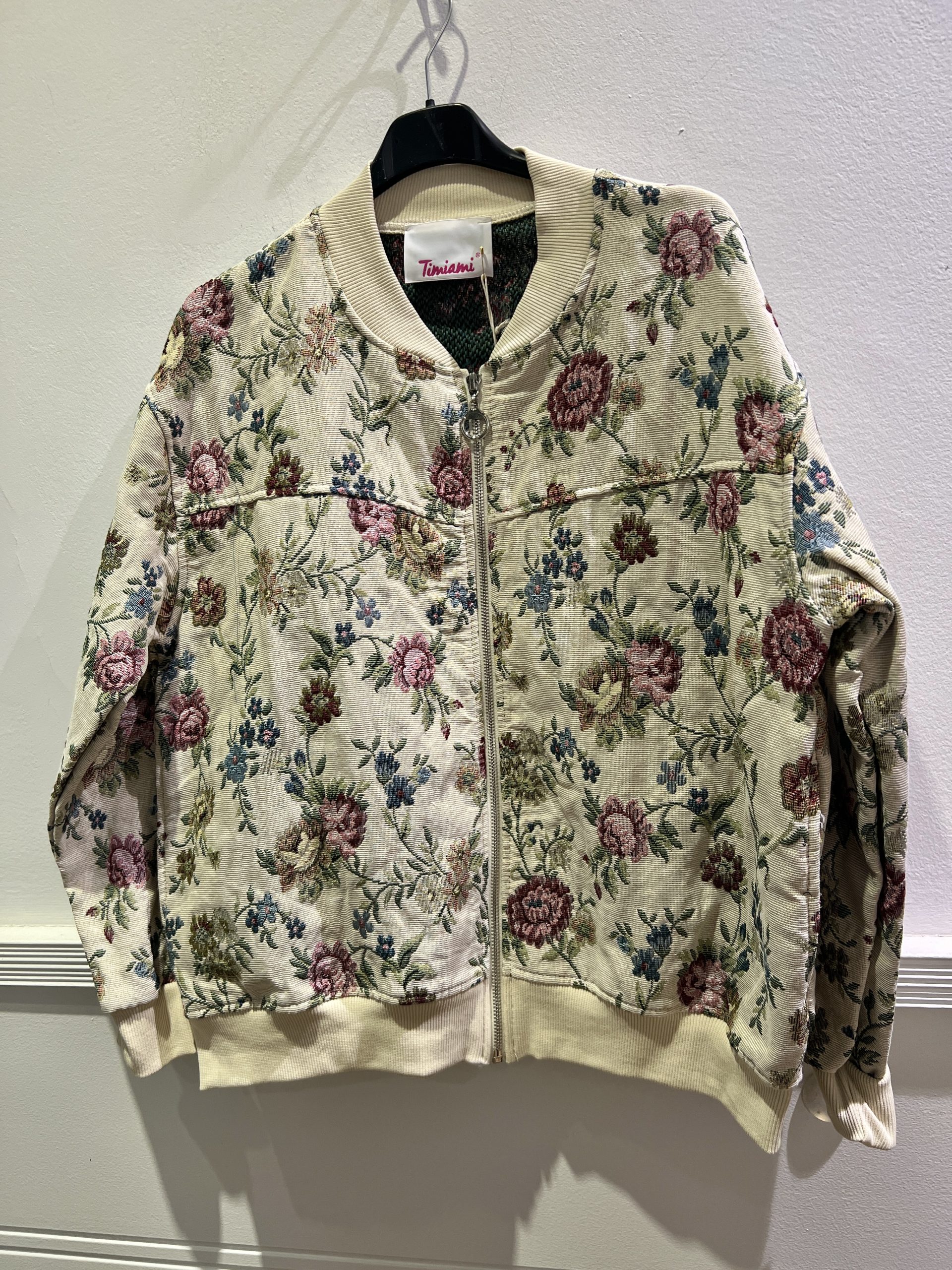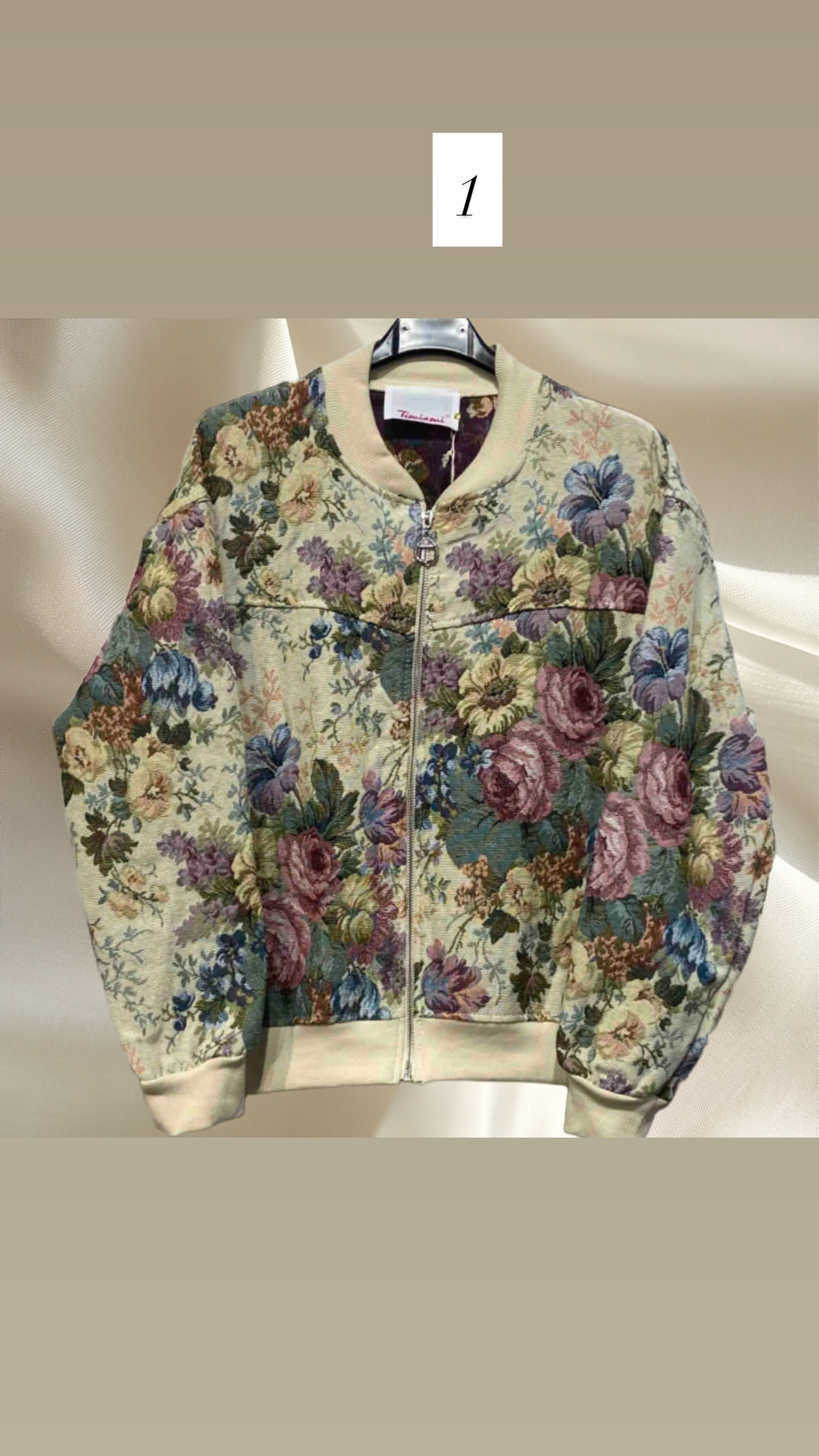 Bomber de silueta urbana con estampado floral de inspiración vintage. Una pieza statement que fusiona referencias clásicas con estética street actual.