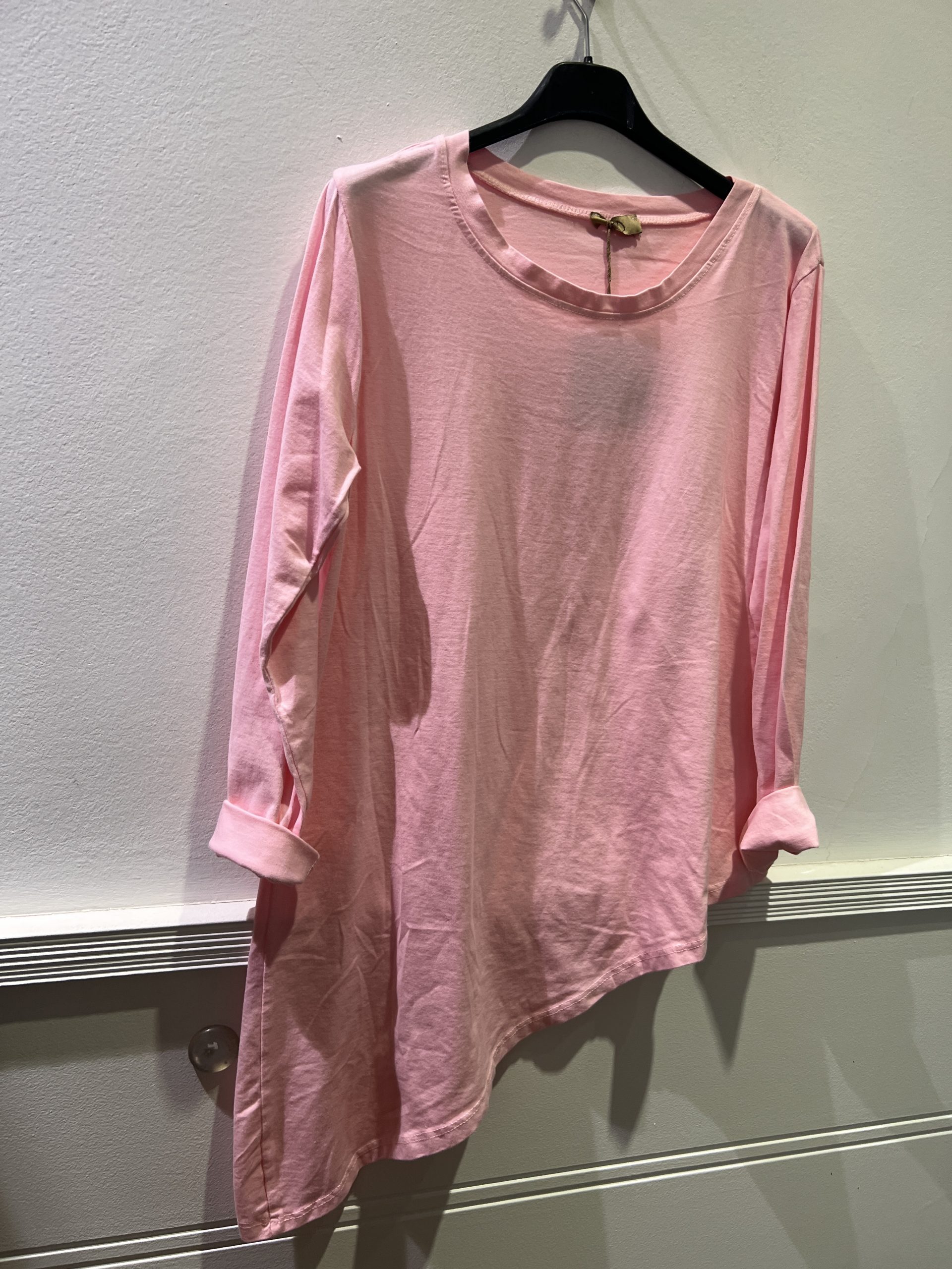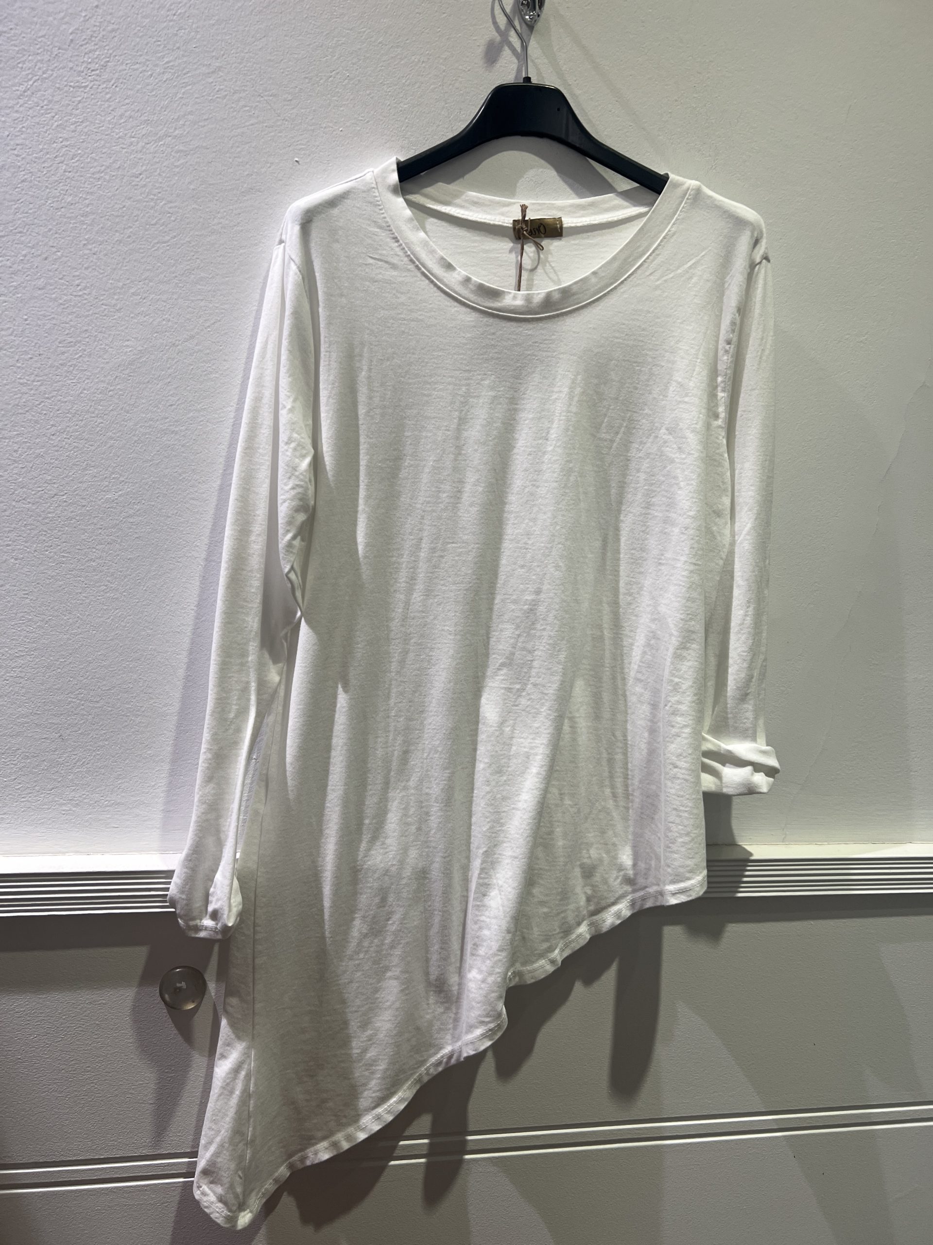 Camiseta de algodón de corte asimétrico y cuello redondo