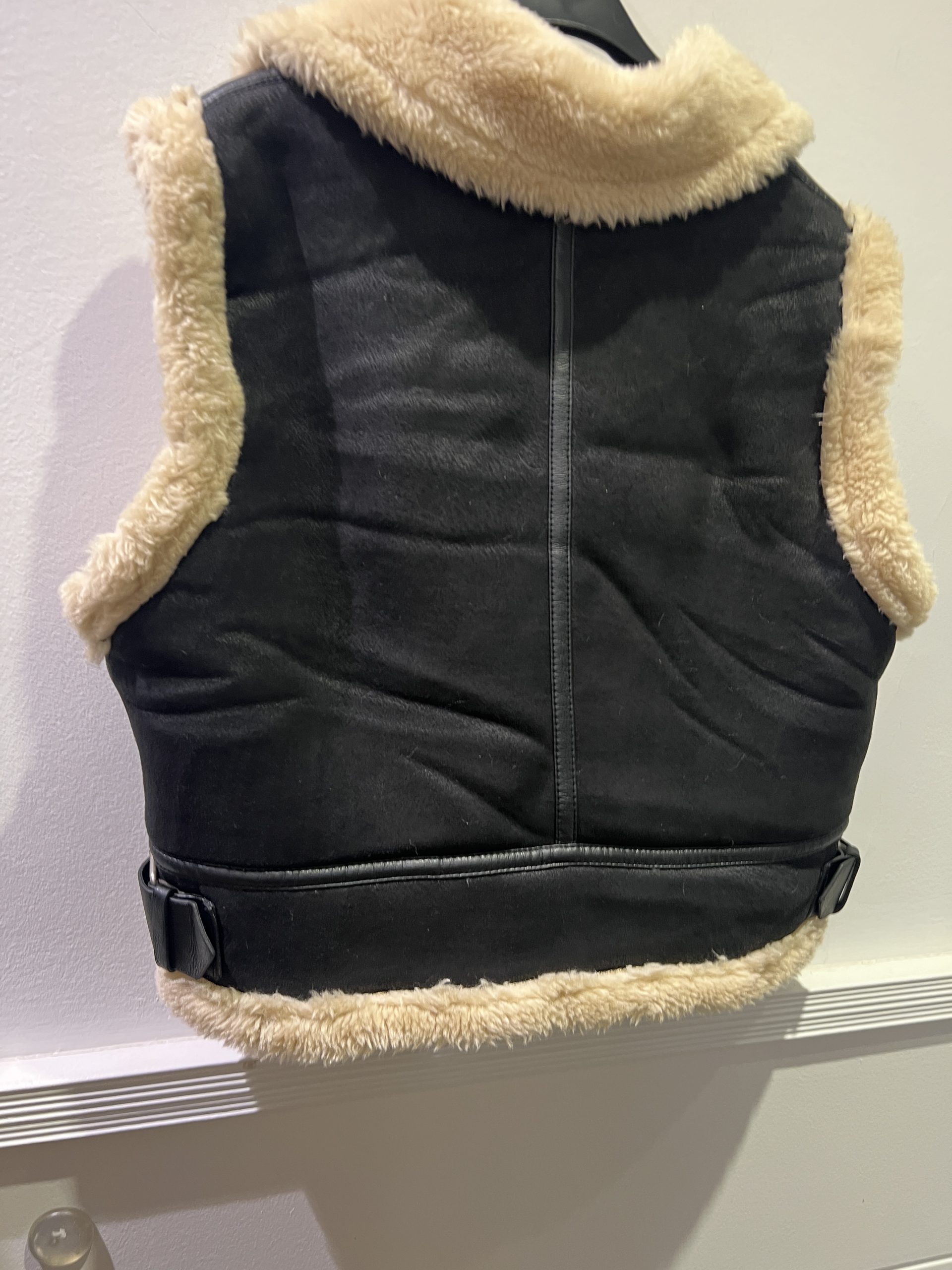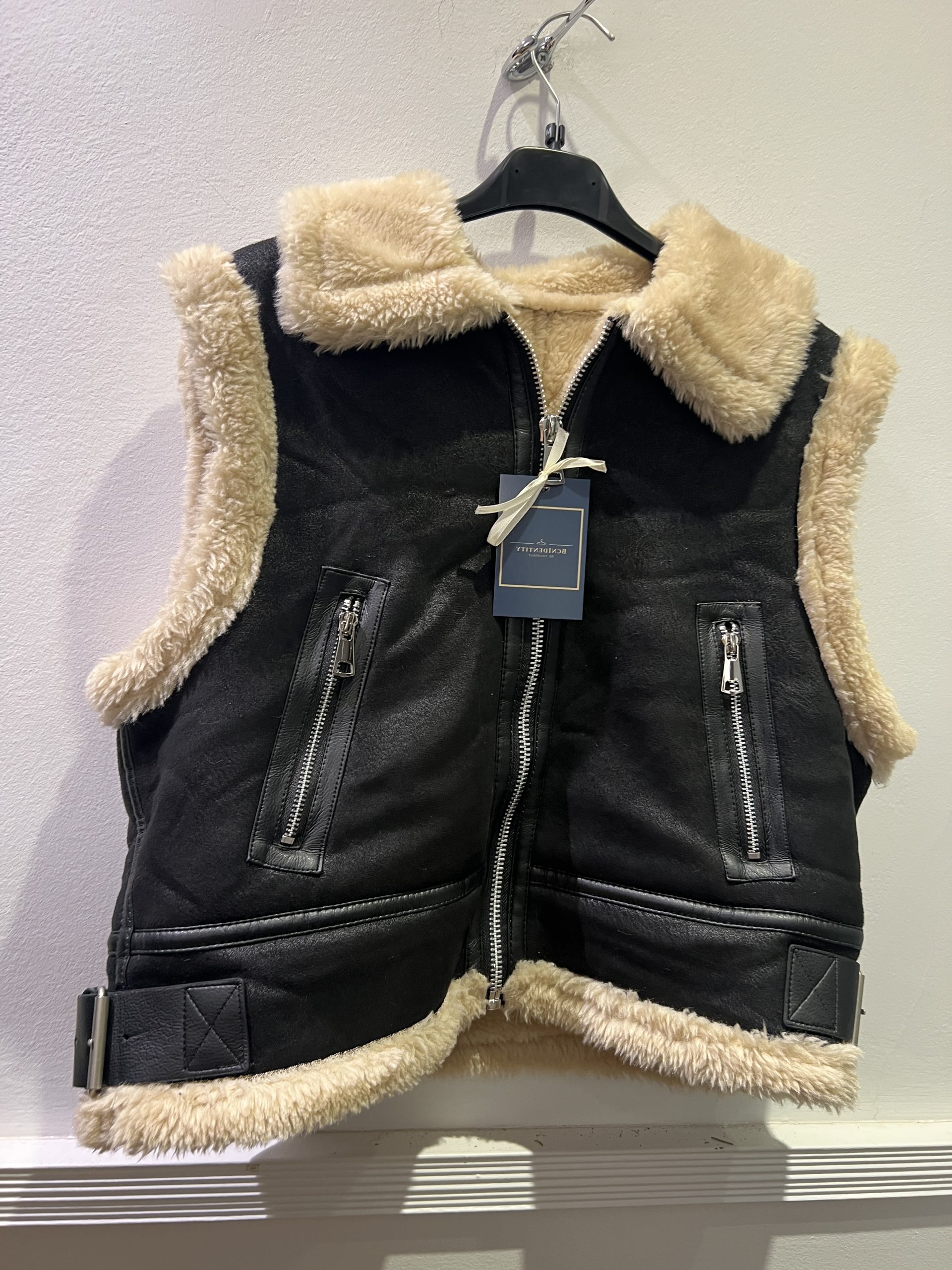 Chaleco de ecopiel forrado de pelo sintetico, cremallera, bolsillos laterales