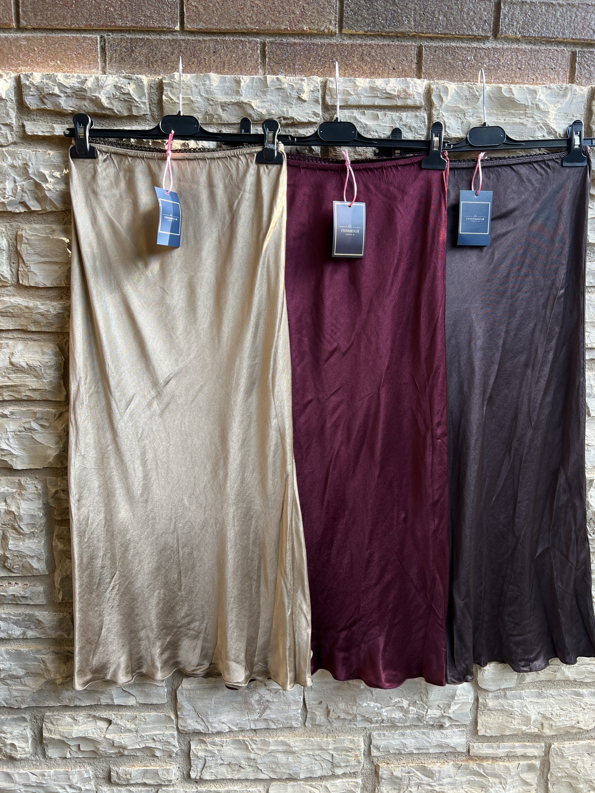 Falda de raso, recta, con ligero vuelo, cintura elastica con ribete