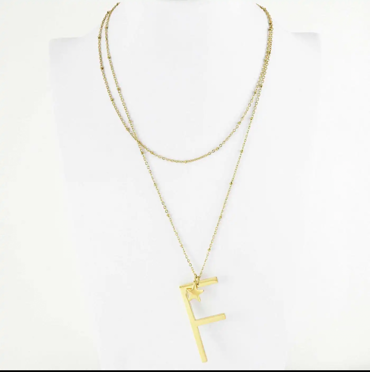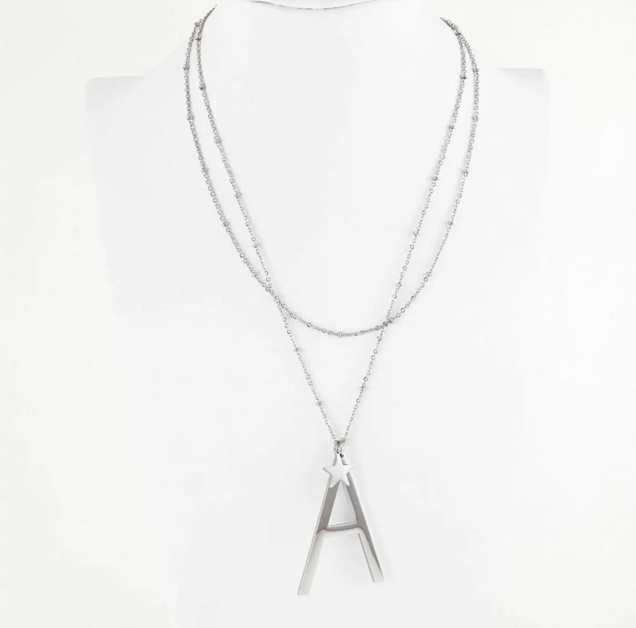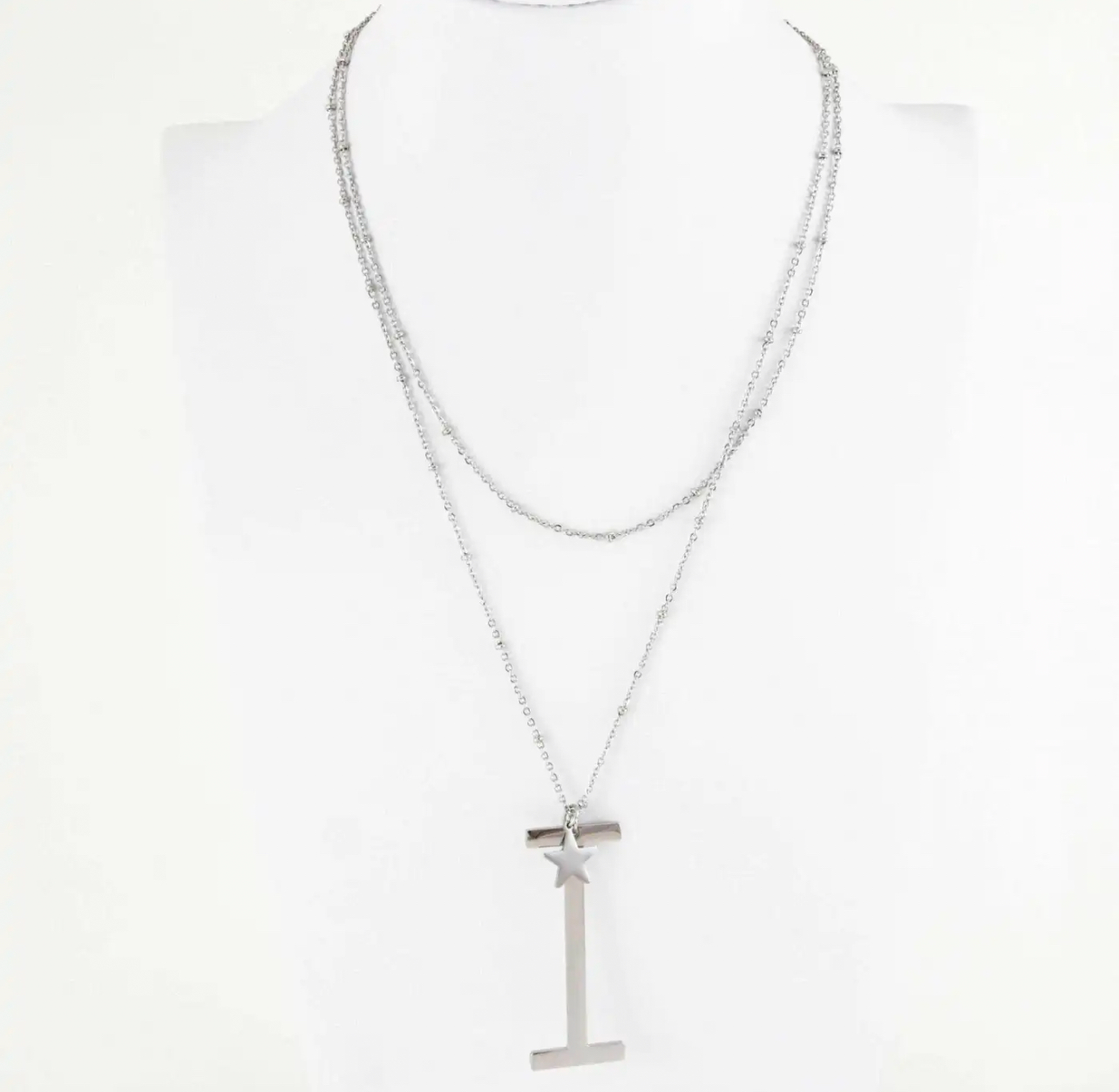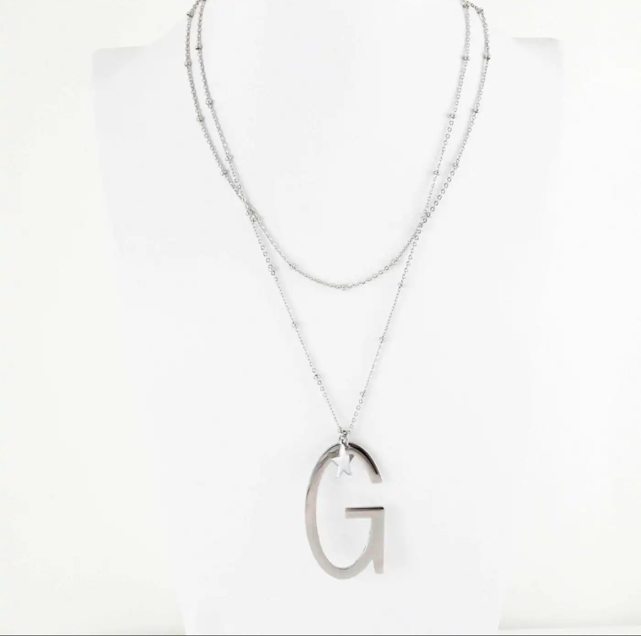 Iniciales de acero en dorado y plateado con cadena a conjunto acero