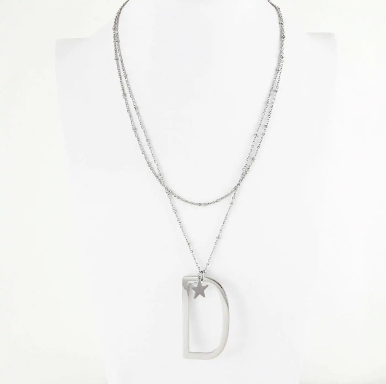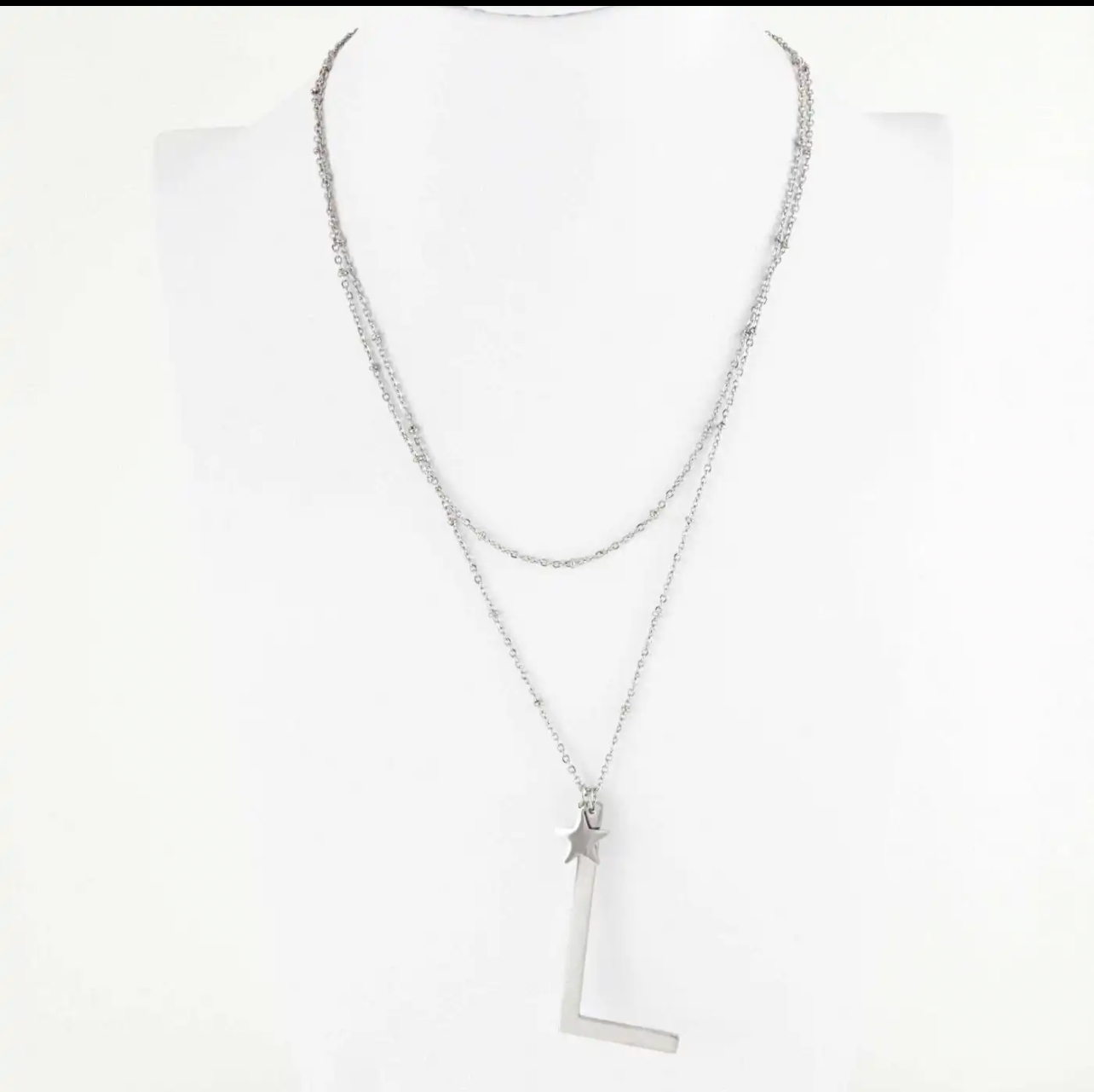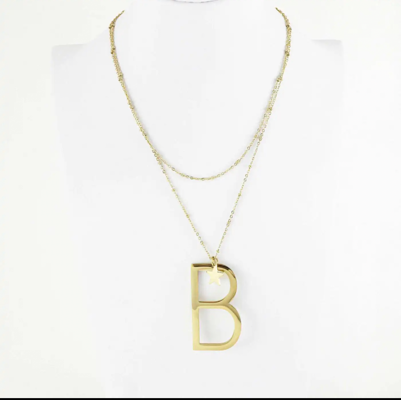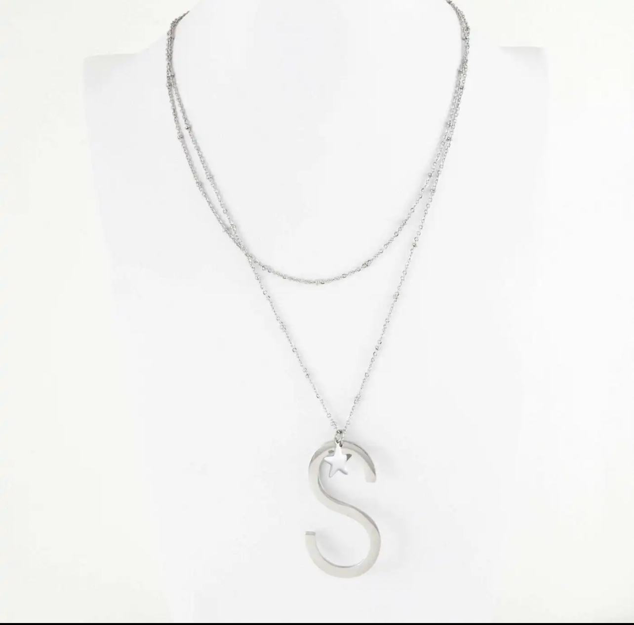 Iniciales de acero en dorado y plateado con cadena a conjunto acero
