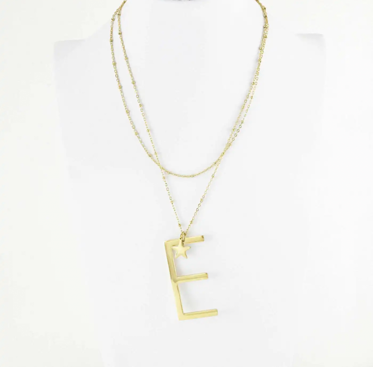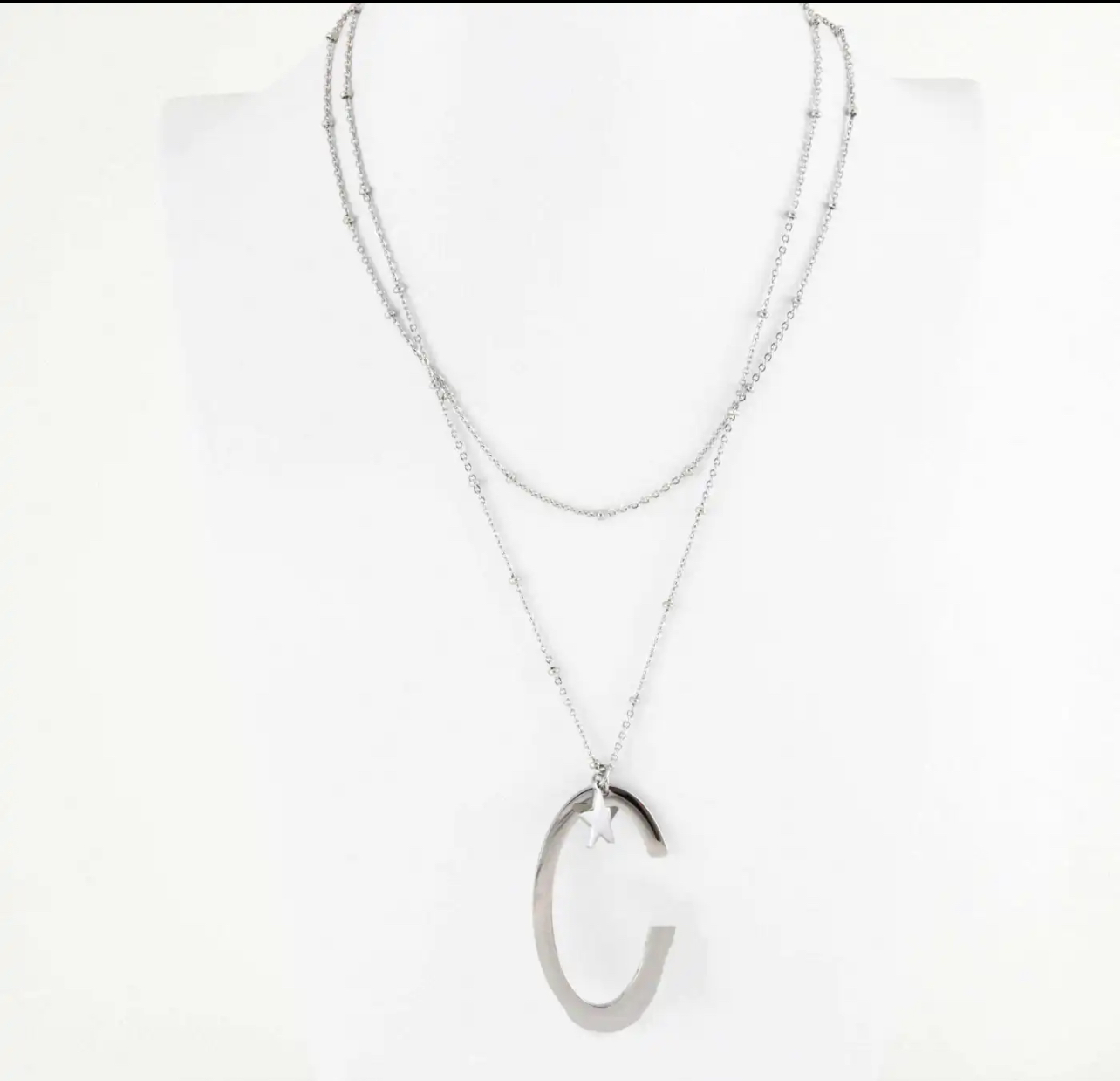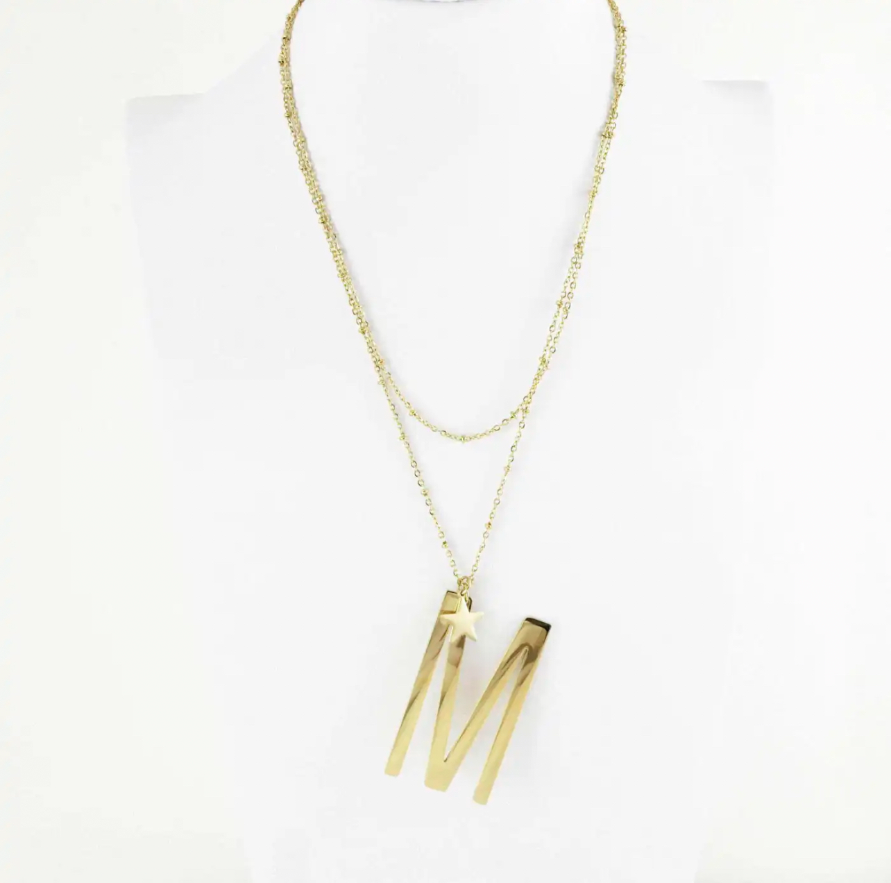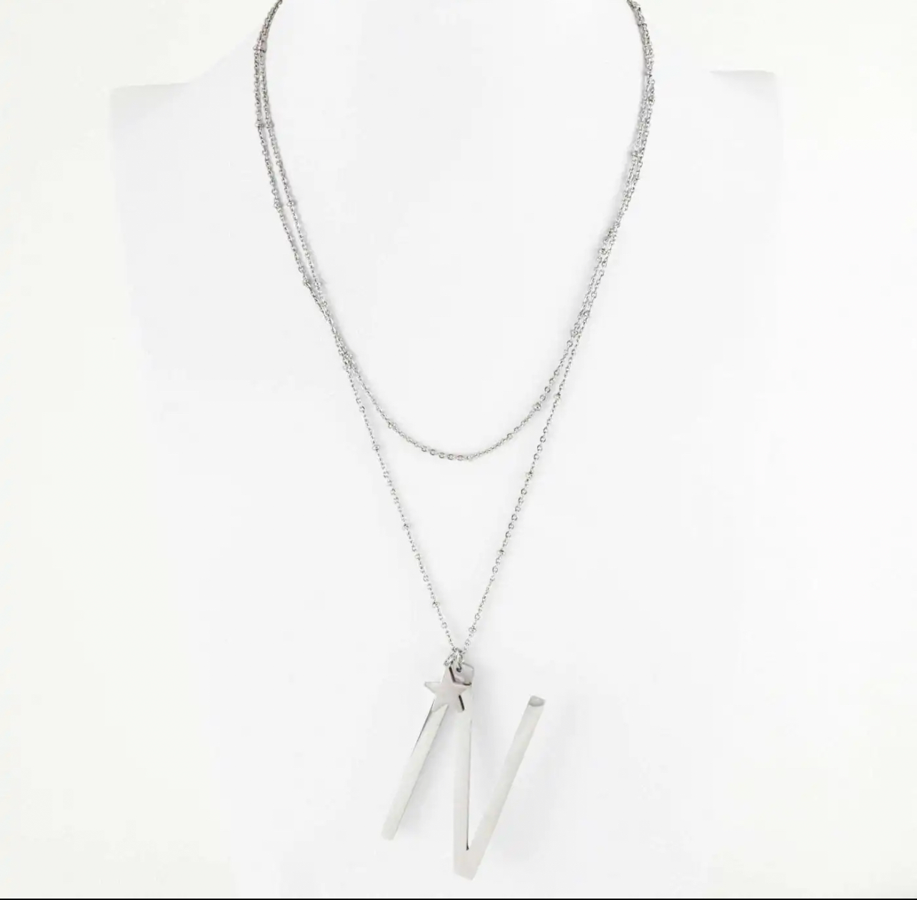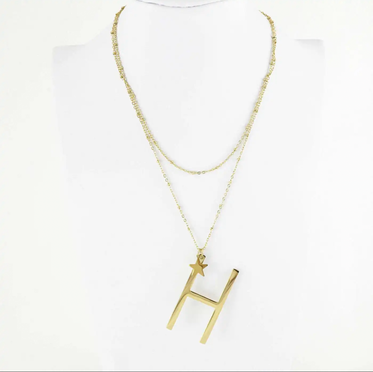 Iniciales de acero en dorado y plateado con cadena a conjunto acero