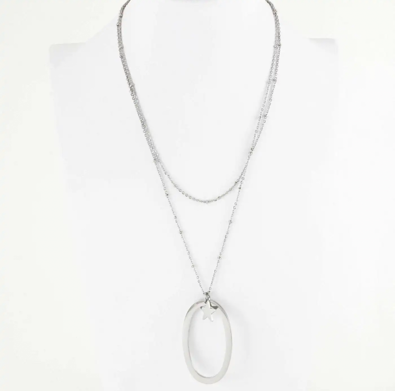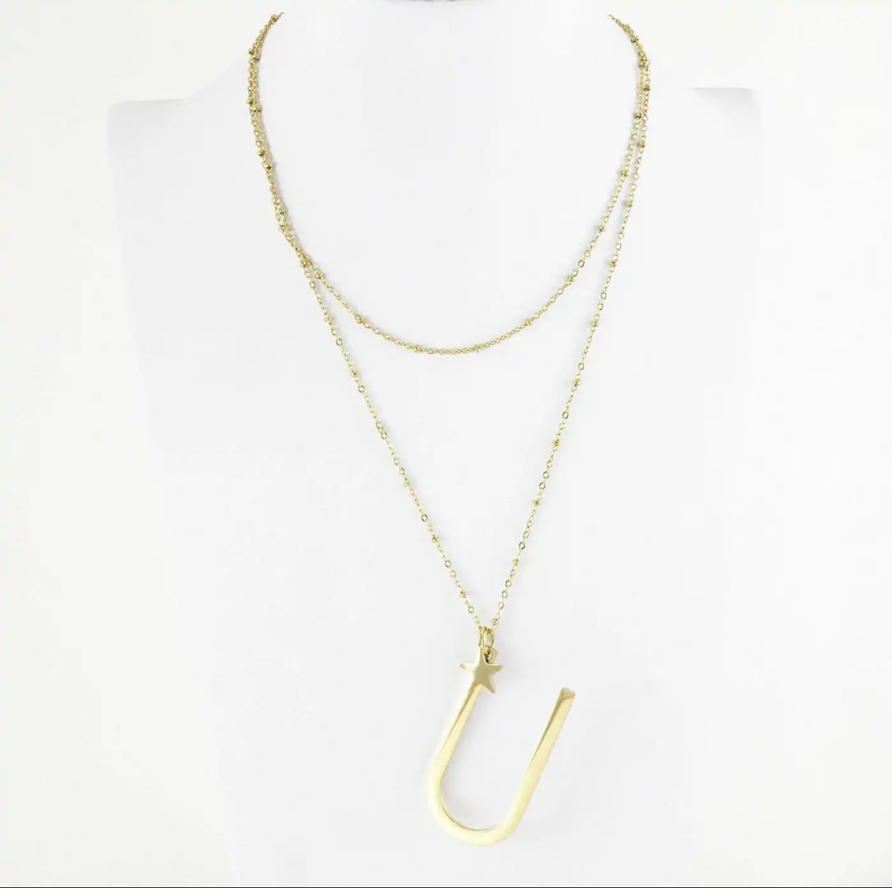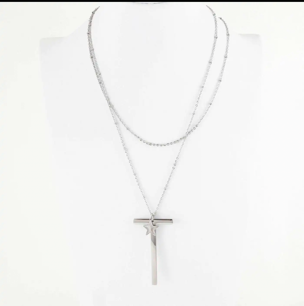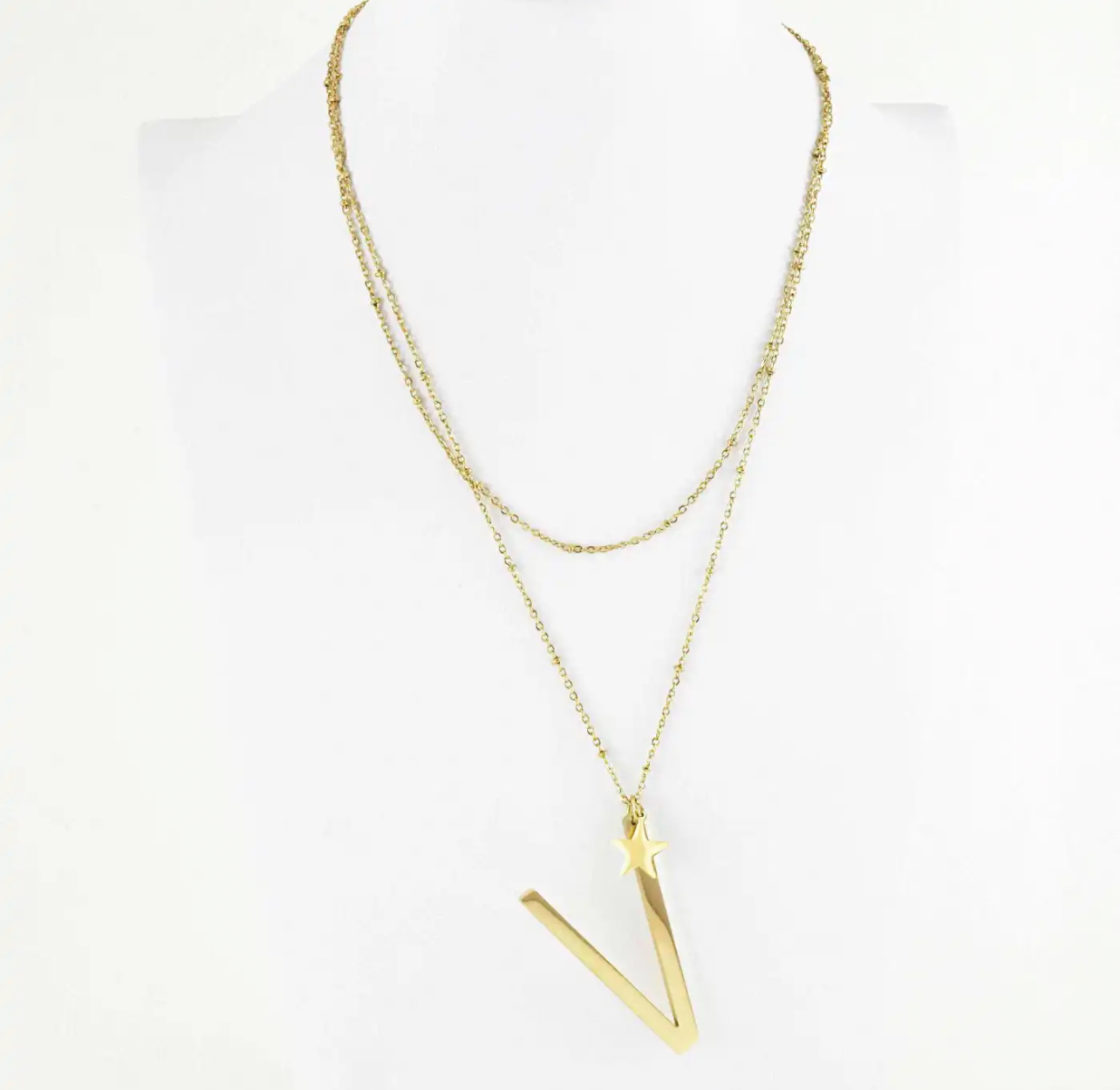 Iniciales de acero en dorado y plateado con cadena a conjunto acero