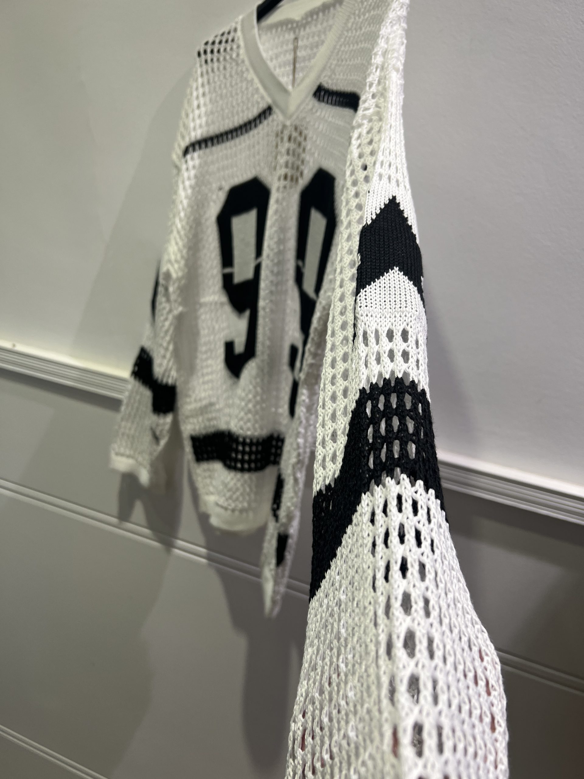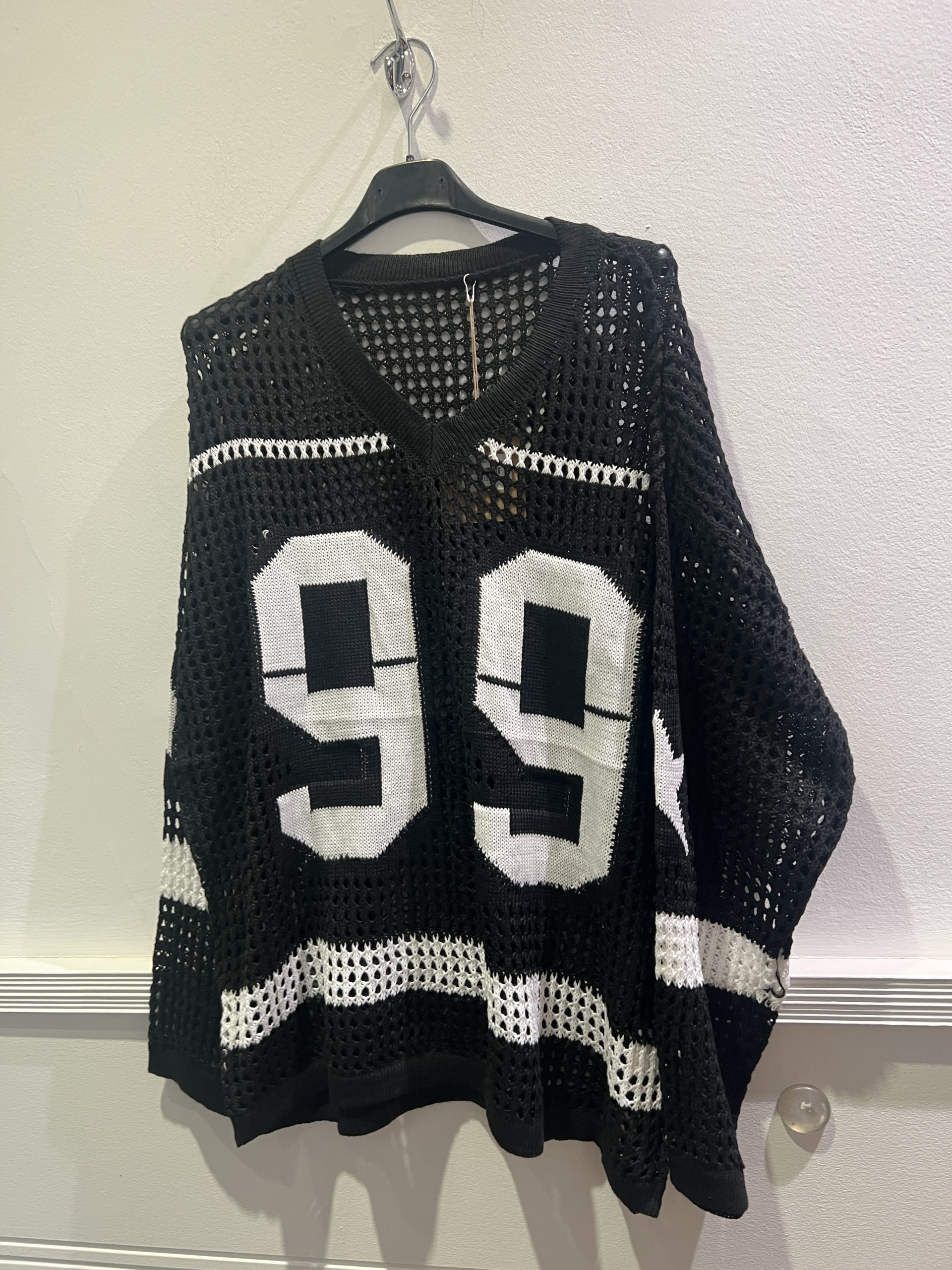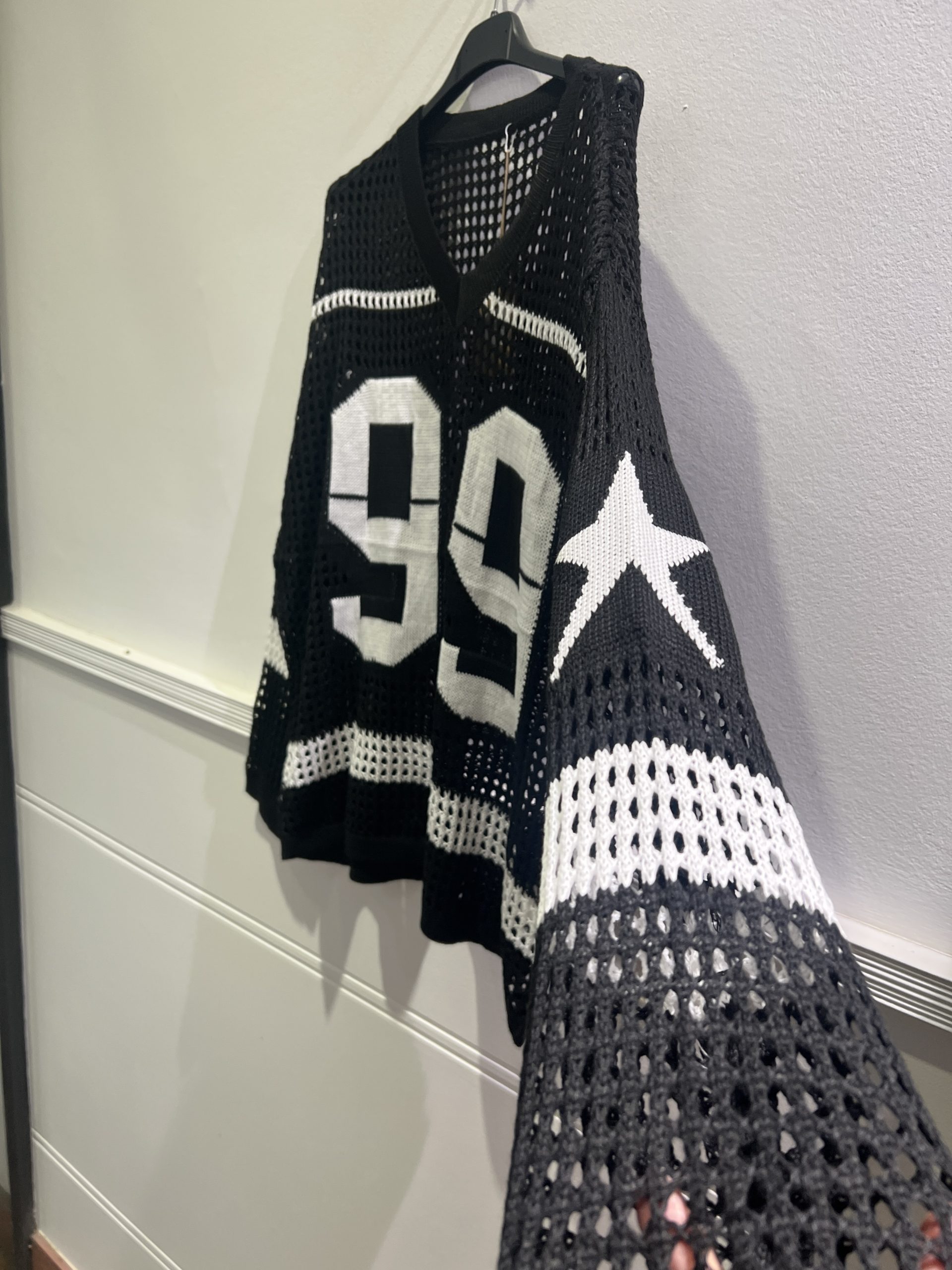 Jersey calado de escote pico, estampado central 99 y mangas con estrella