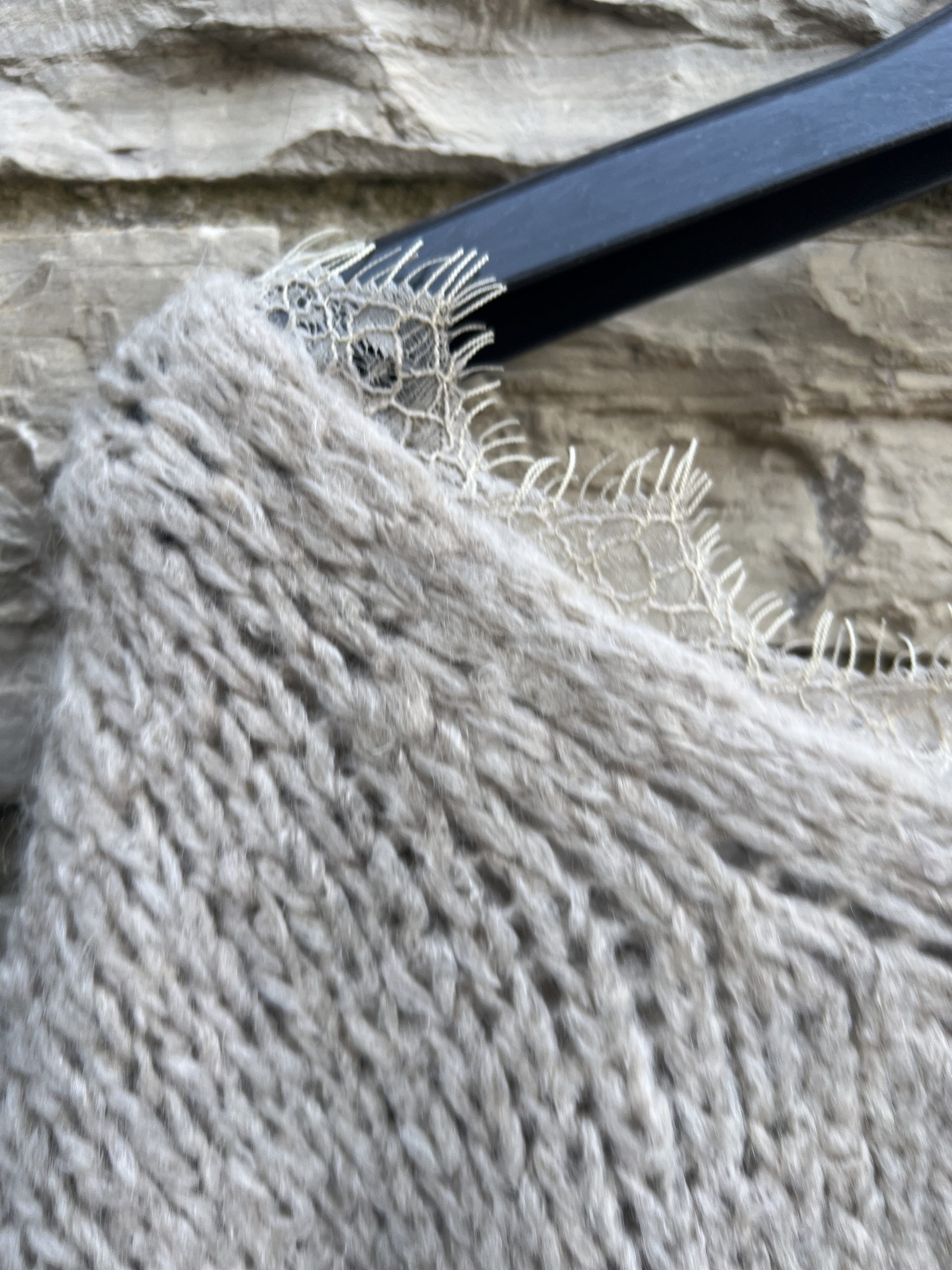 Jersey cuello pico con blonda, manga acabada en puño