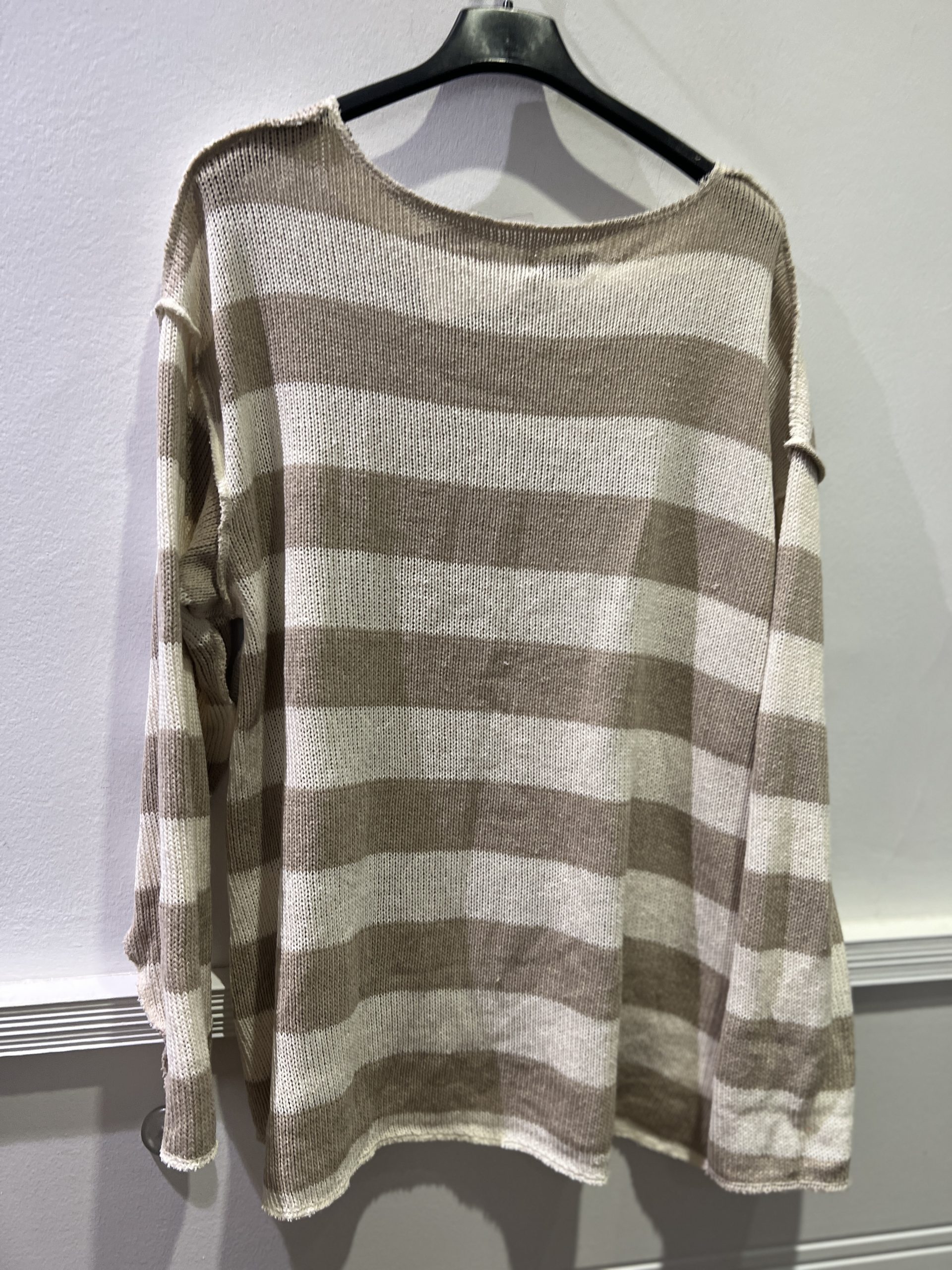 Jersey de punto  con escote redondo amplio y diseño oversize, perfecto para un look cómodo y actual. Su sisa amplia de 65 cm aporta libertad de movimiento y un aire relajado, ideal para el día a día.