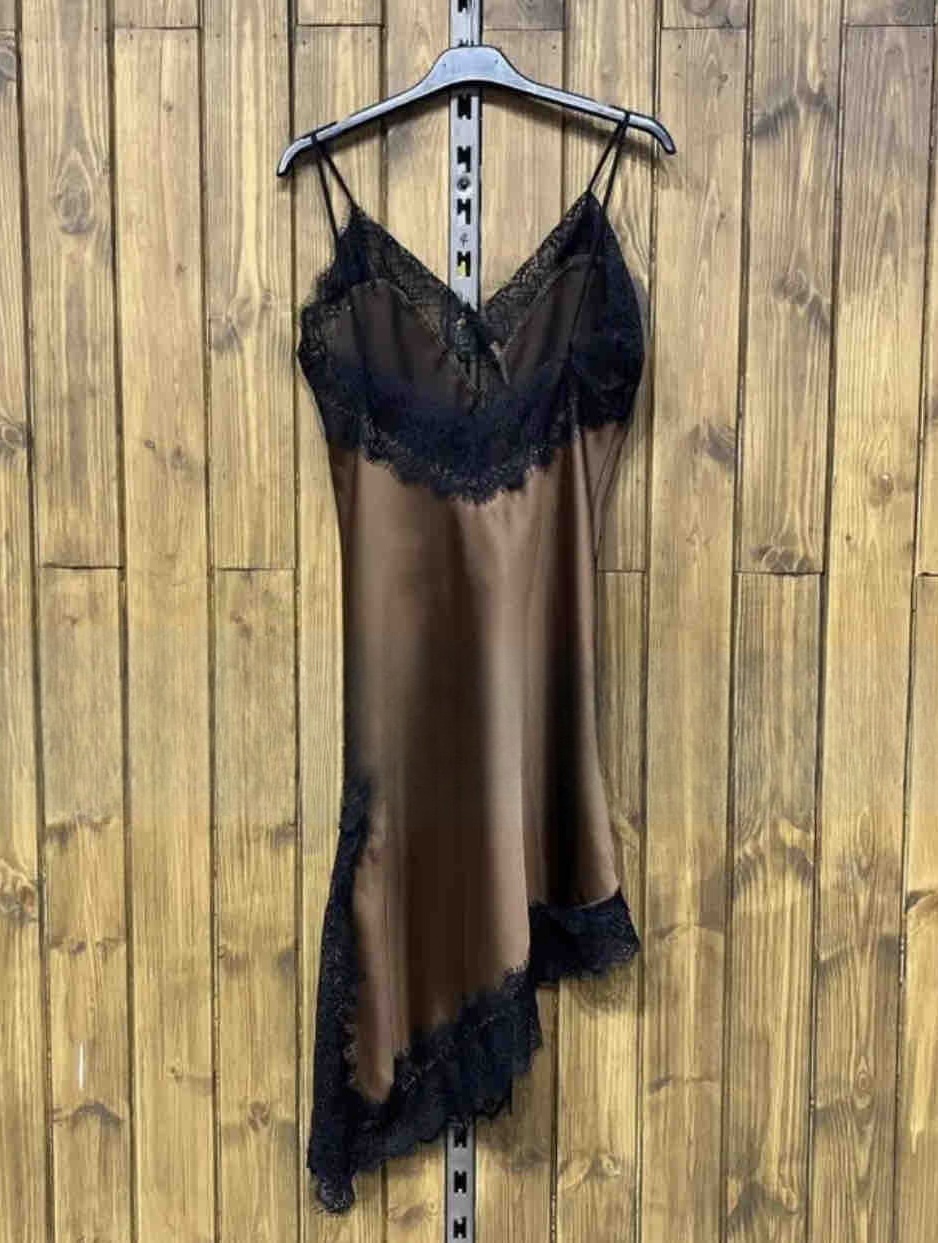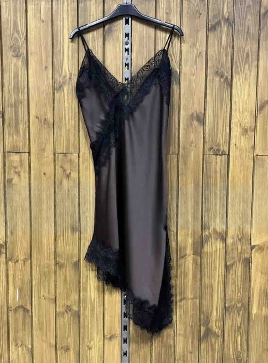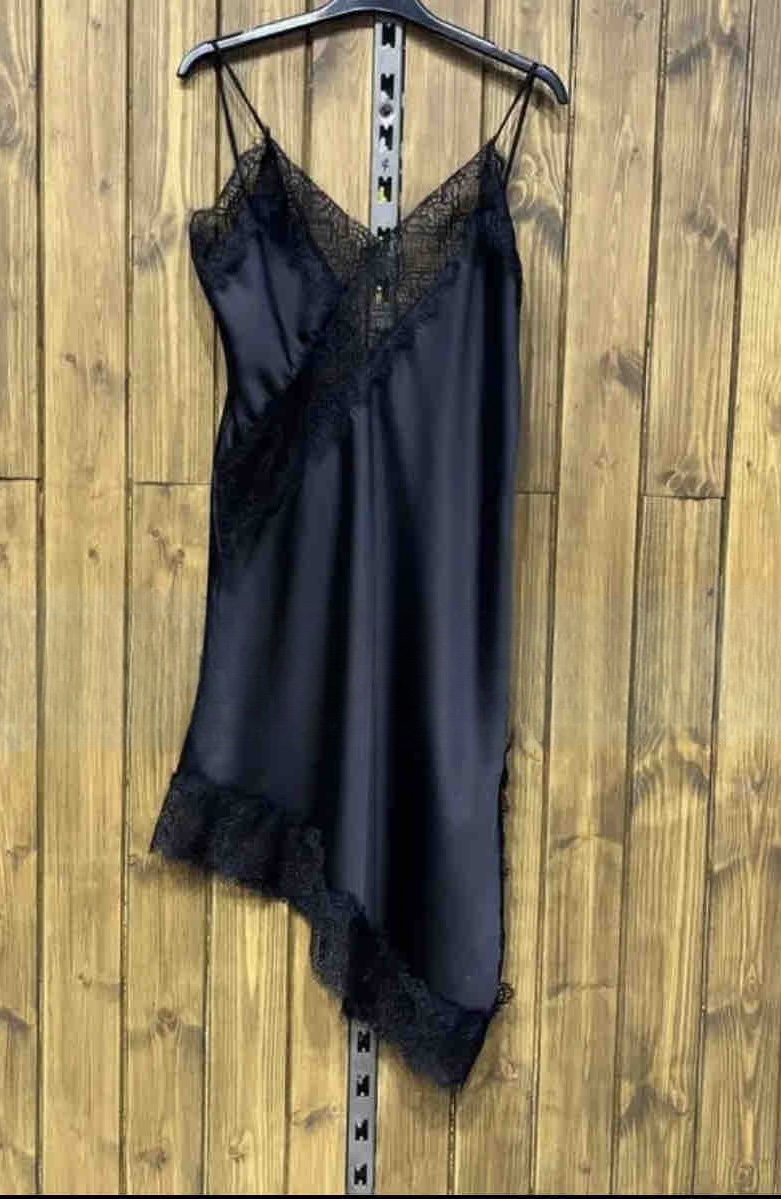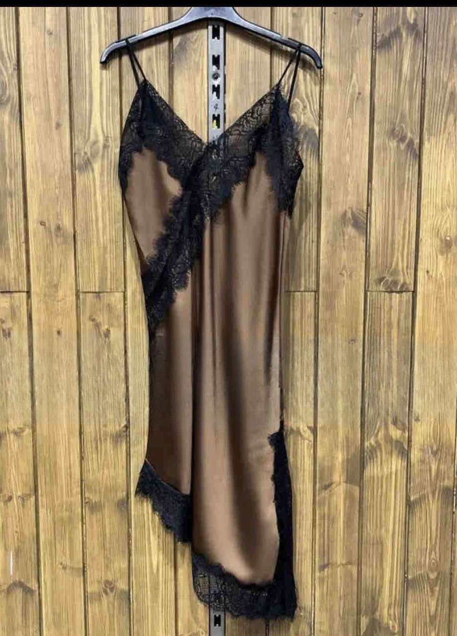 Vestido lencero combinado con detalle de encaje en escote y remate . Tirantes elásticos