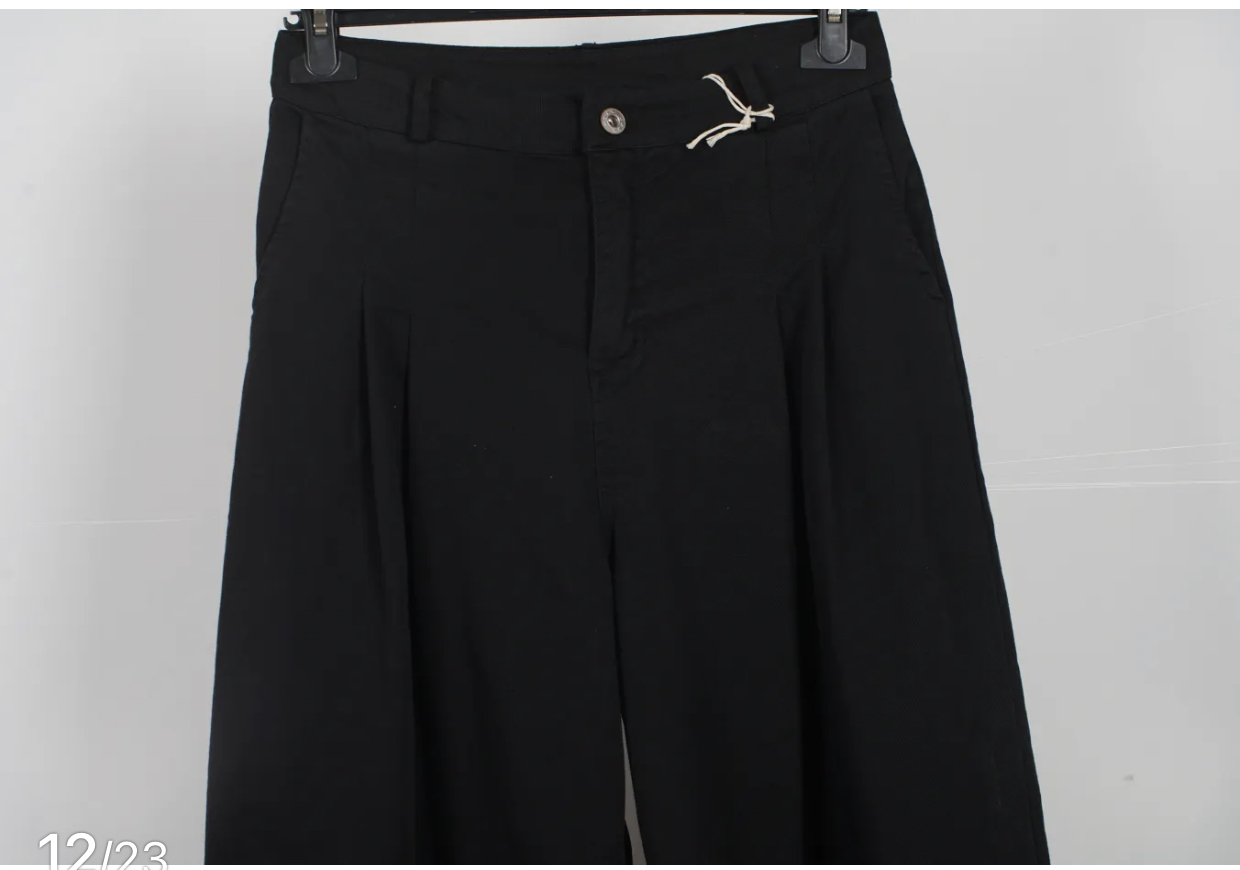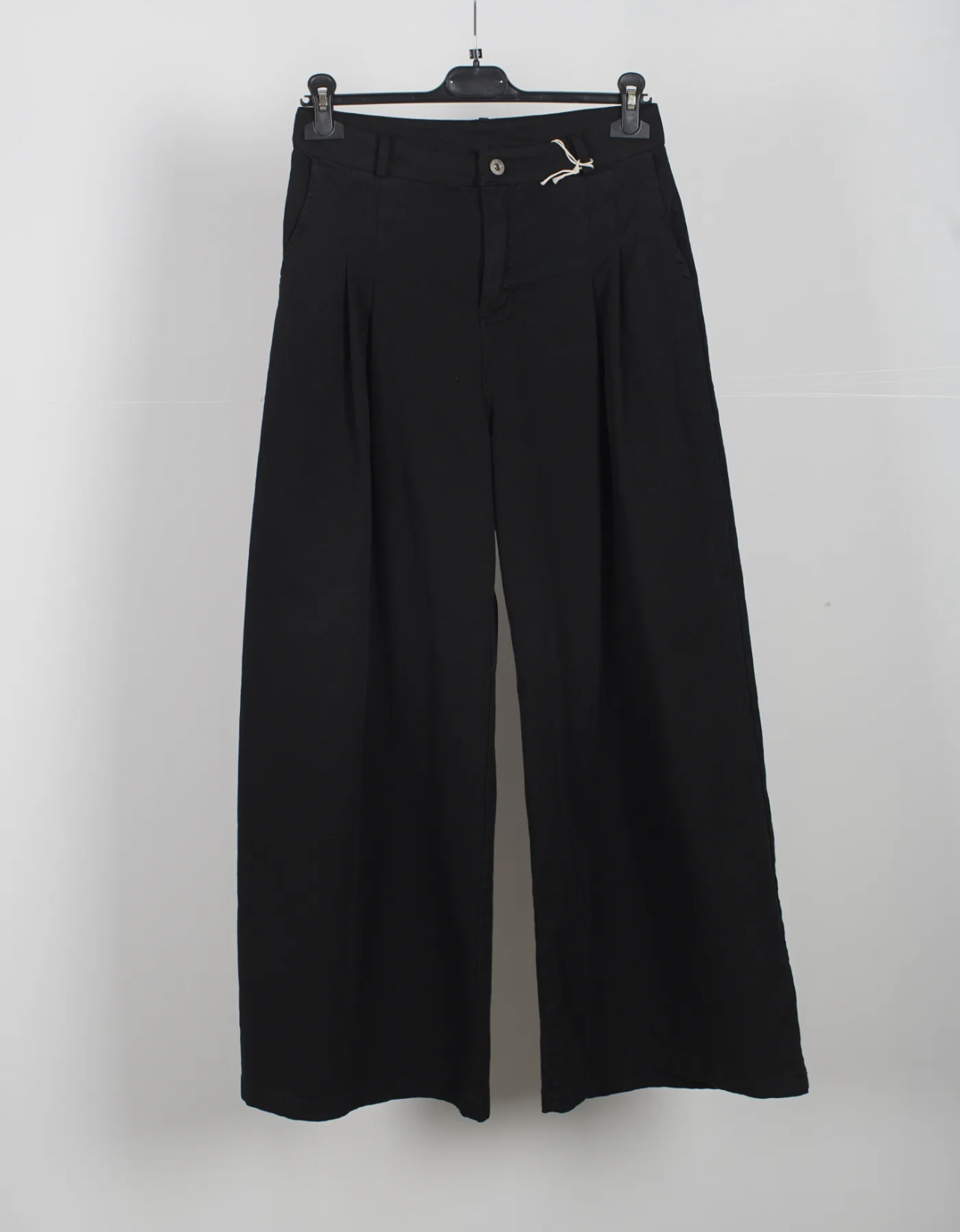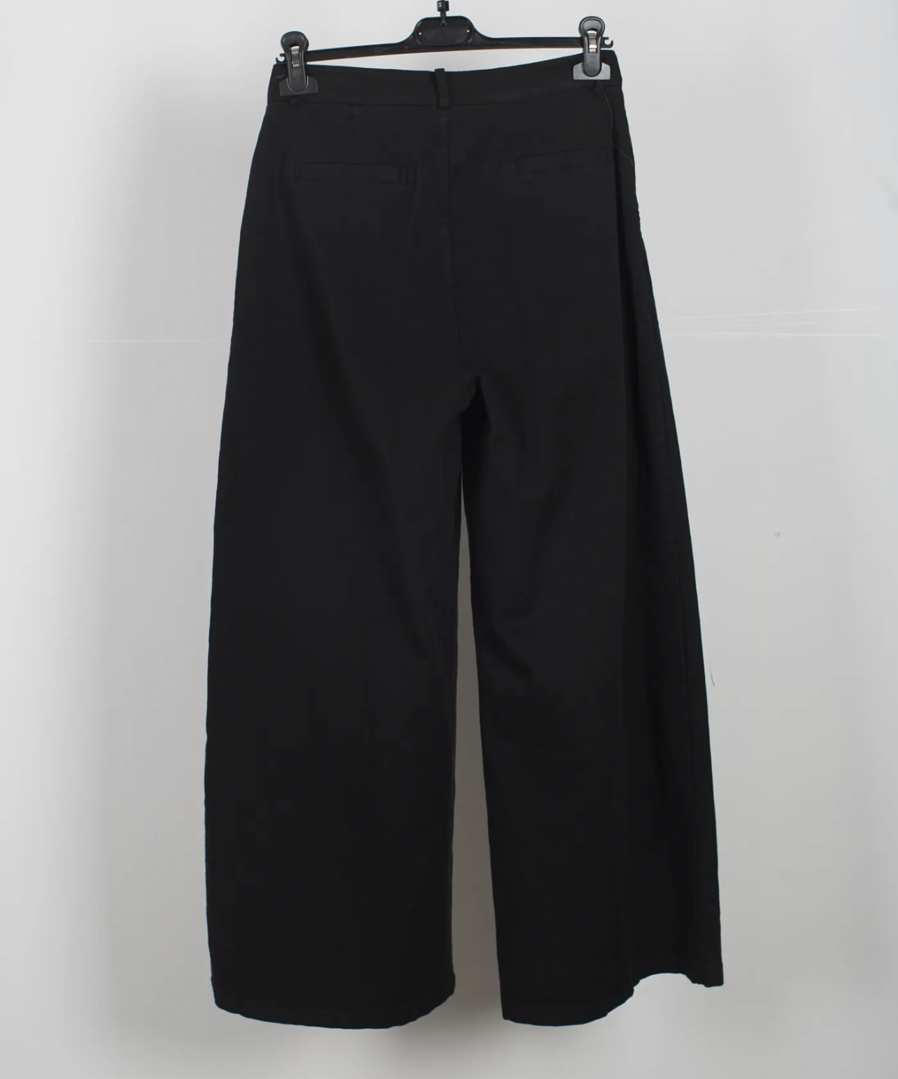 Pantalon de algodon de corte amplio, pinzas, bolsillos laterales y falsos bolsillos posteriores