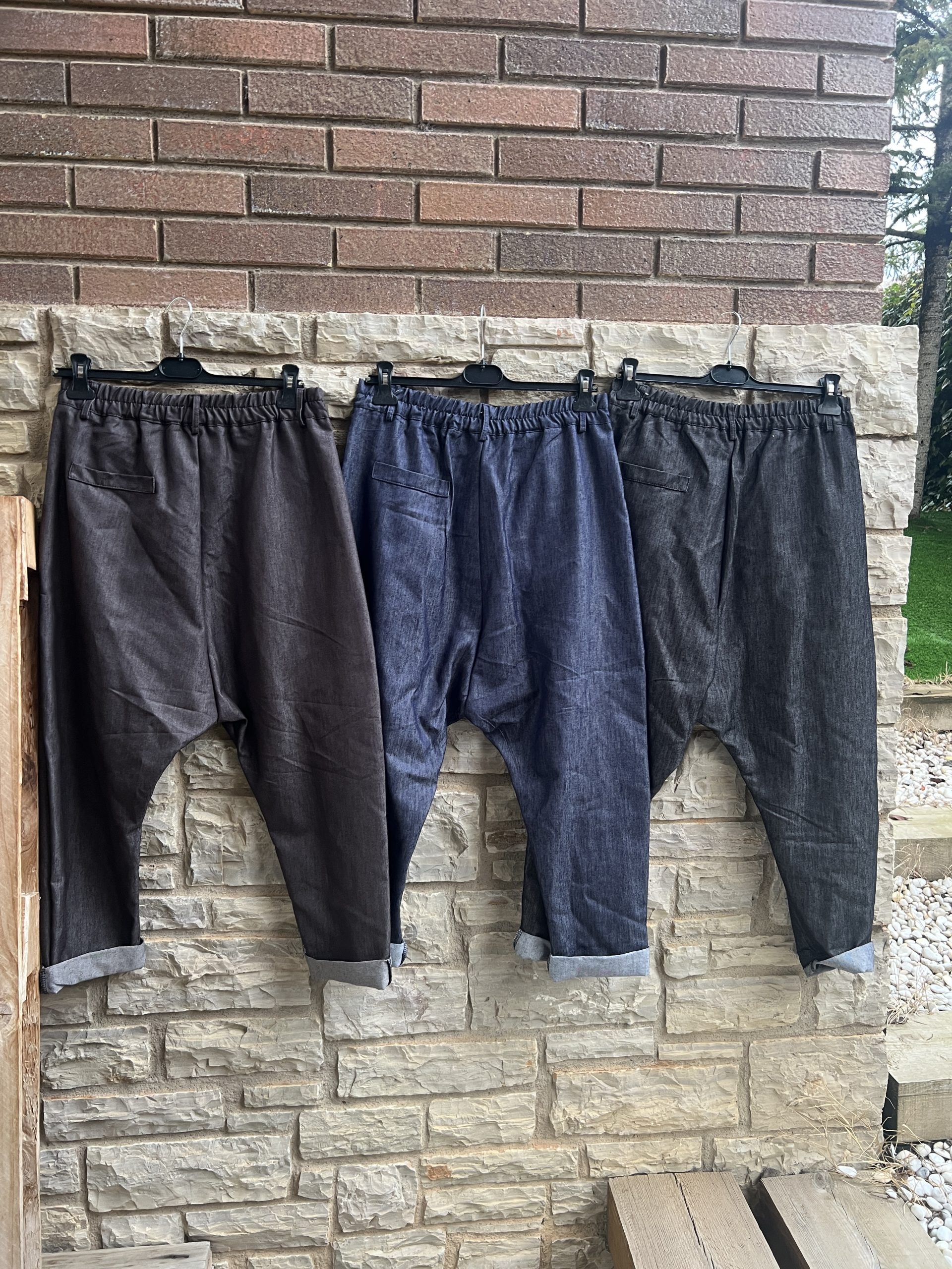 Pantalon vaquero de corte baggy, mismo patron que el Liliana con boton y cremallera