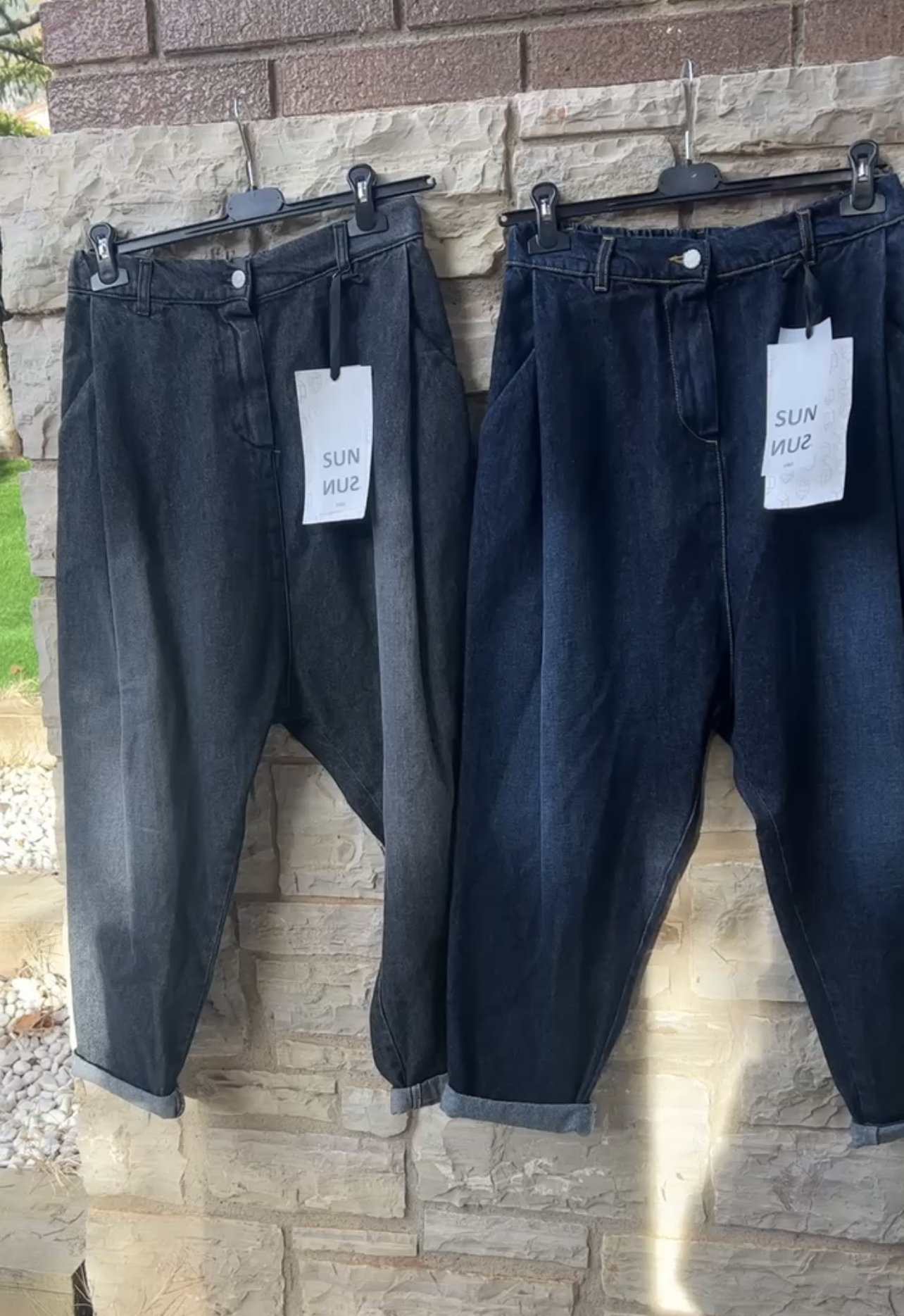 Pantalon vaquero mismo corte que el Liliana con boton y cremallera, bolsillos laterales y cintura engomada
