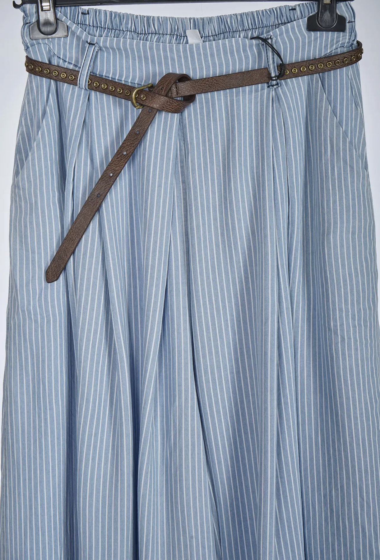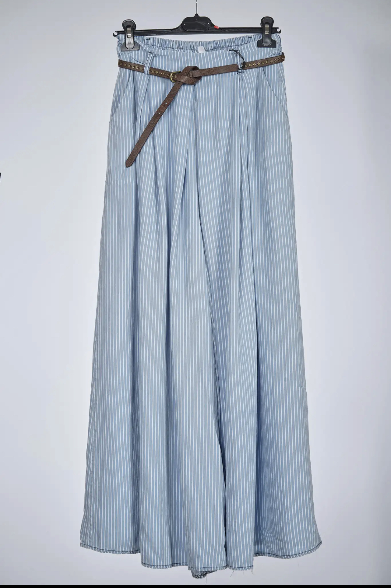 Pantalon de corte amplio, cintura engomada, bolsillos laterales y Cinturón