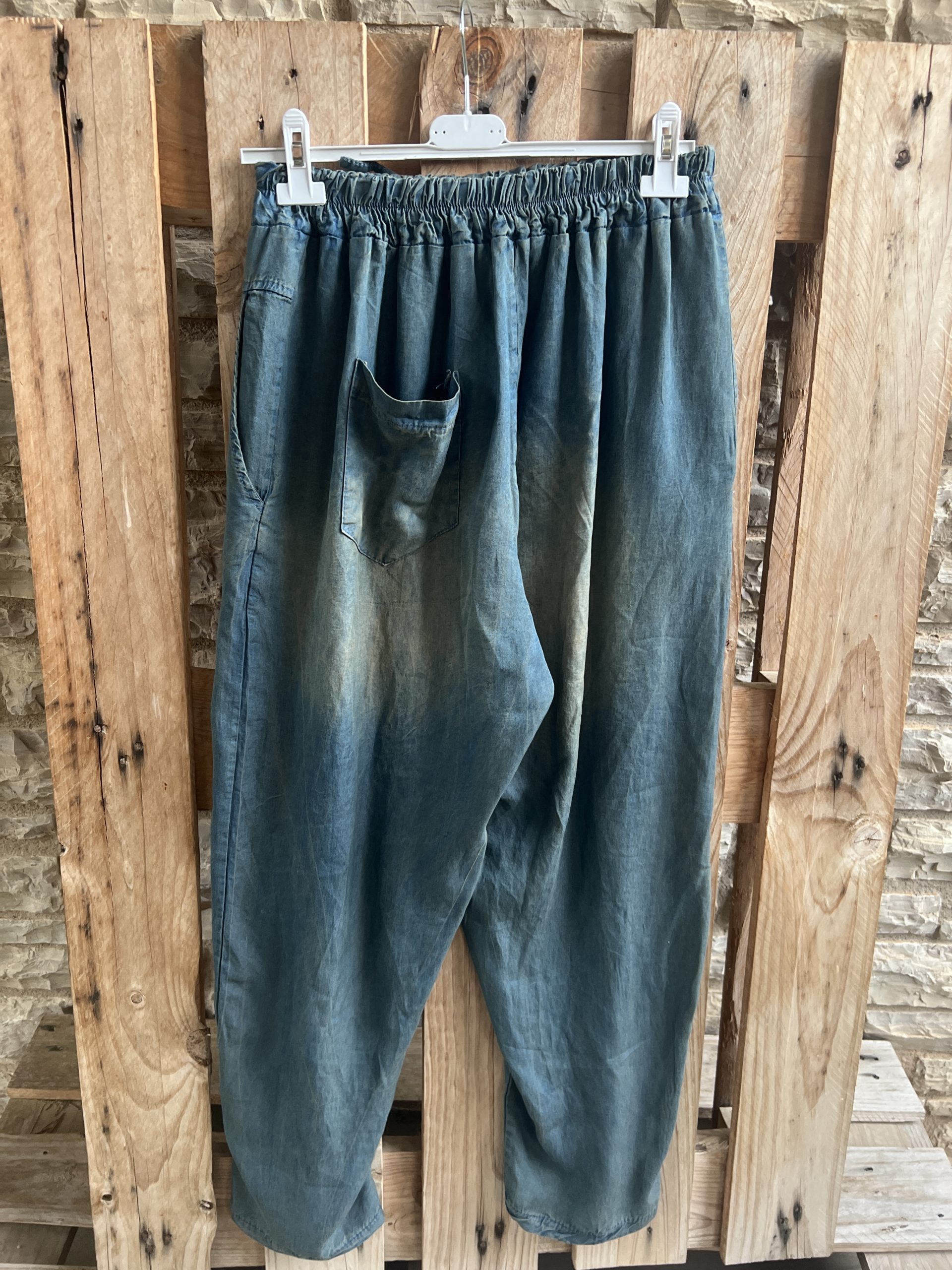 Pantalon vaquero de Tencel cintura engomada y regulable, bolsillos laterales y bolsillo trasero
