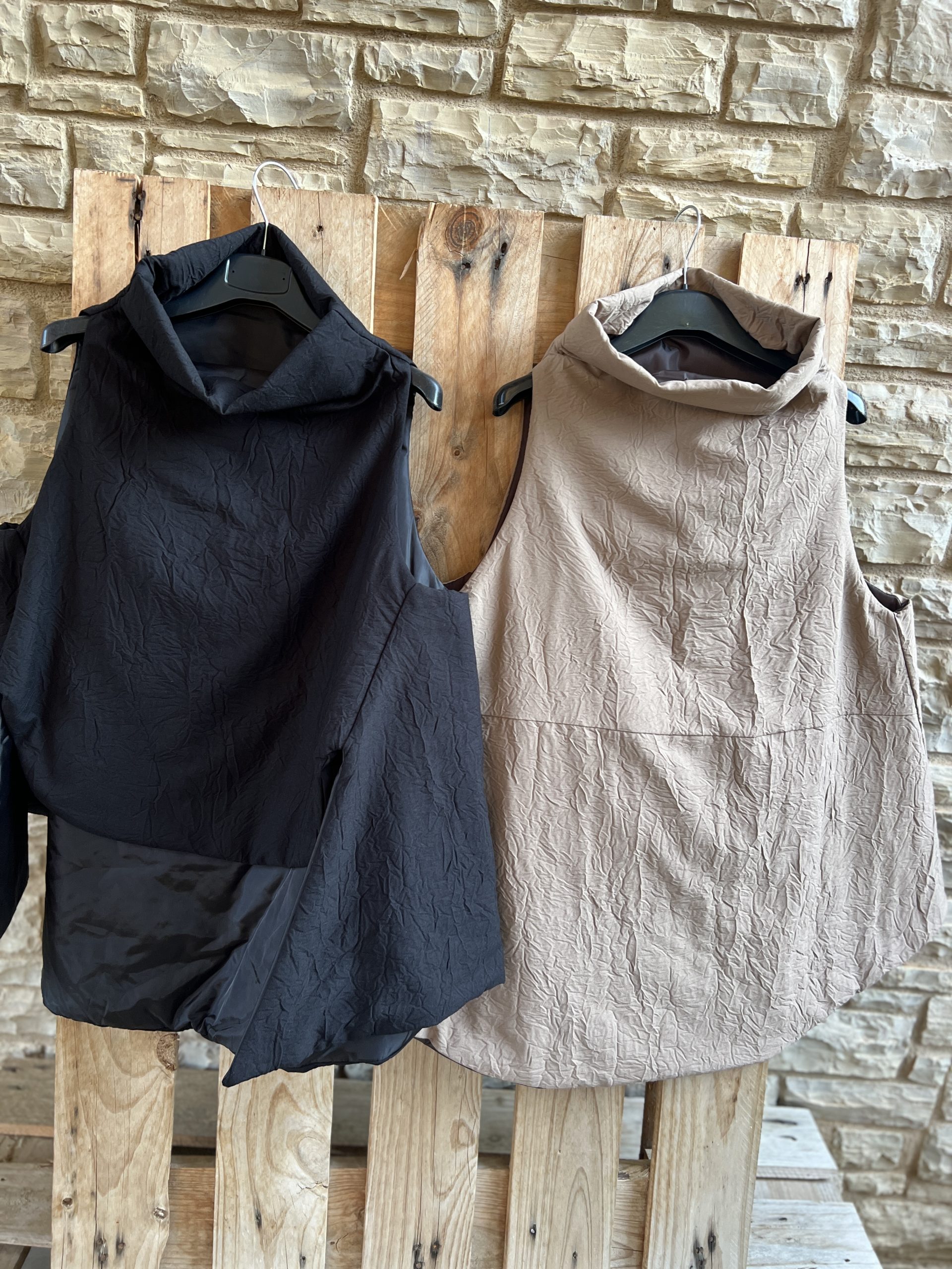 Poncho acolchafo de cuello alto y de corte asimetrico