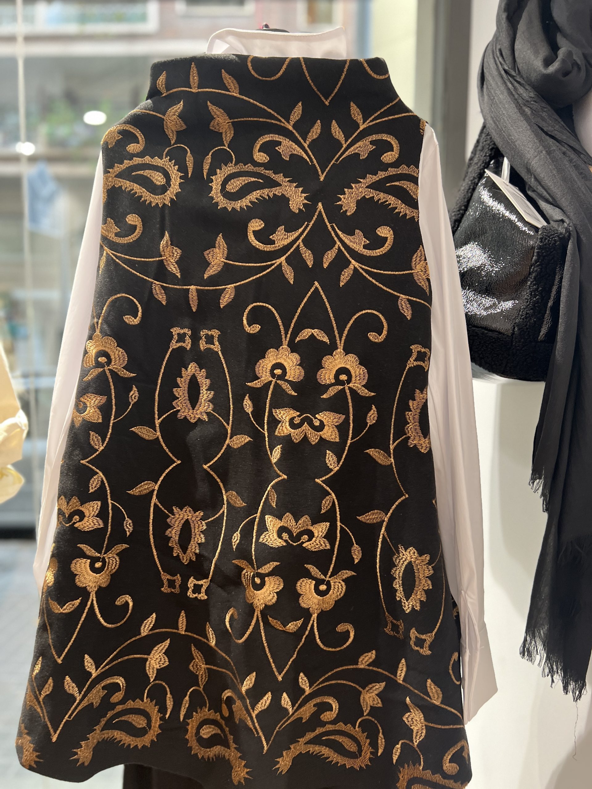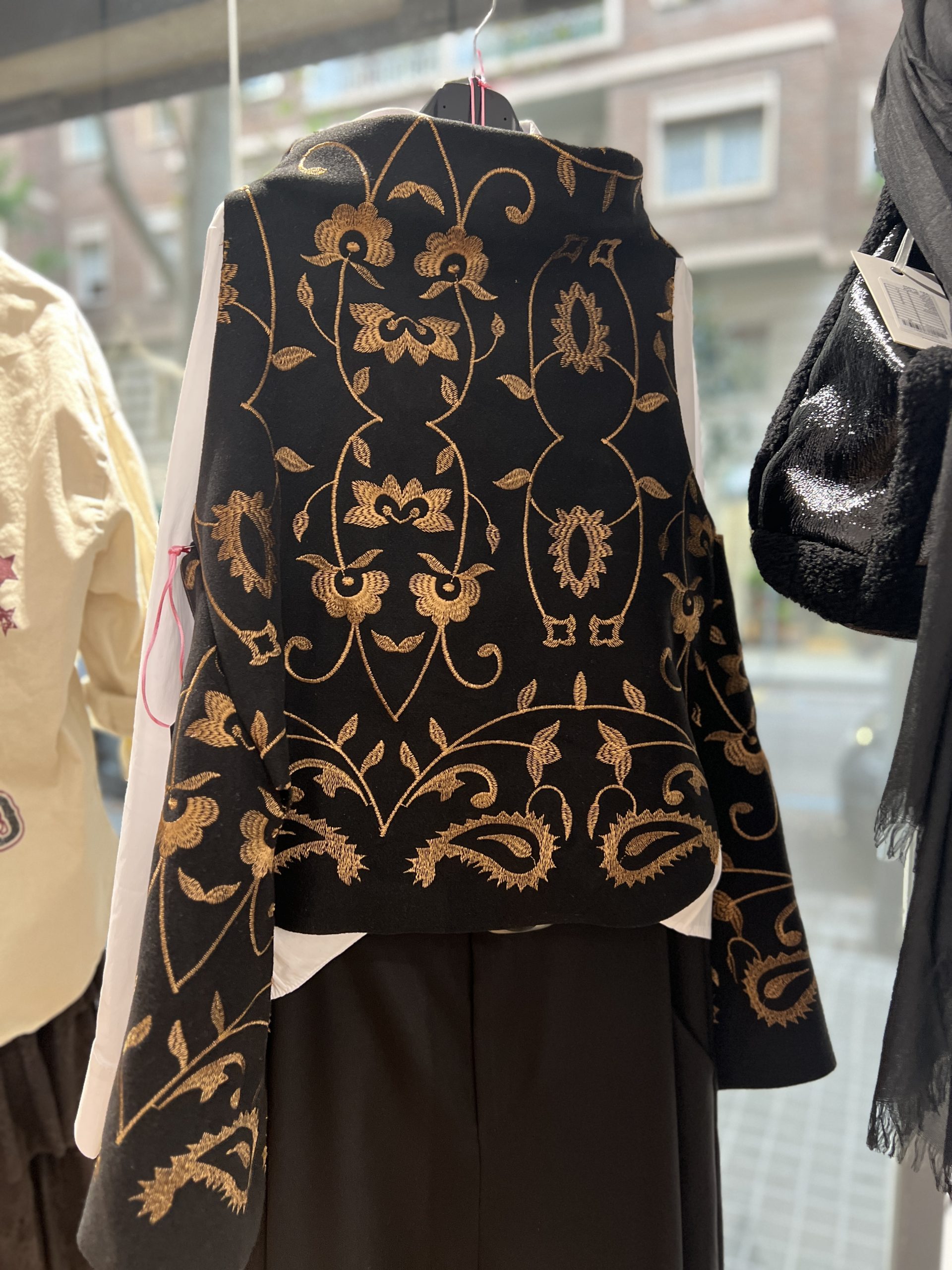 Poncho negro con bordados dorados