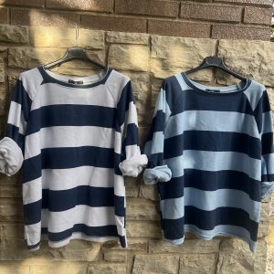 Camiseta/sudadera de corte amplio (sisa80 largo 67) de interior rizado, manga larga y cuello redondo amplio